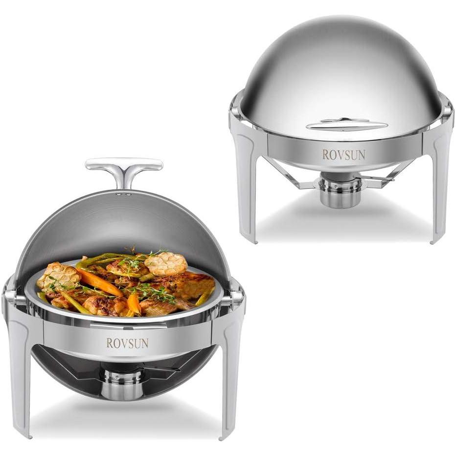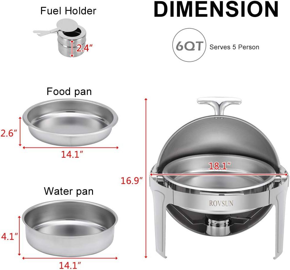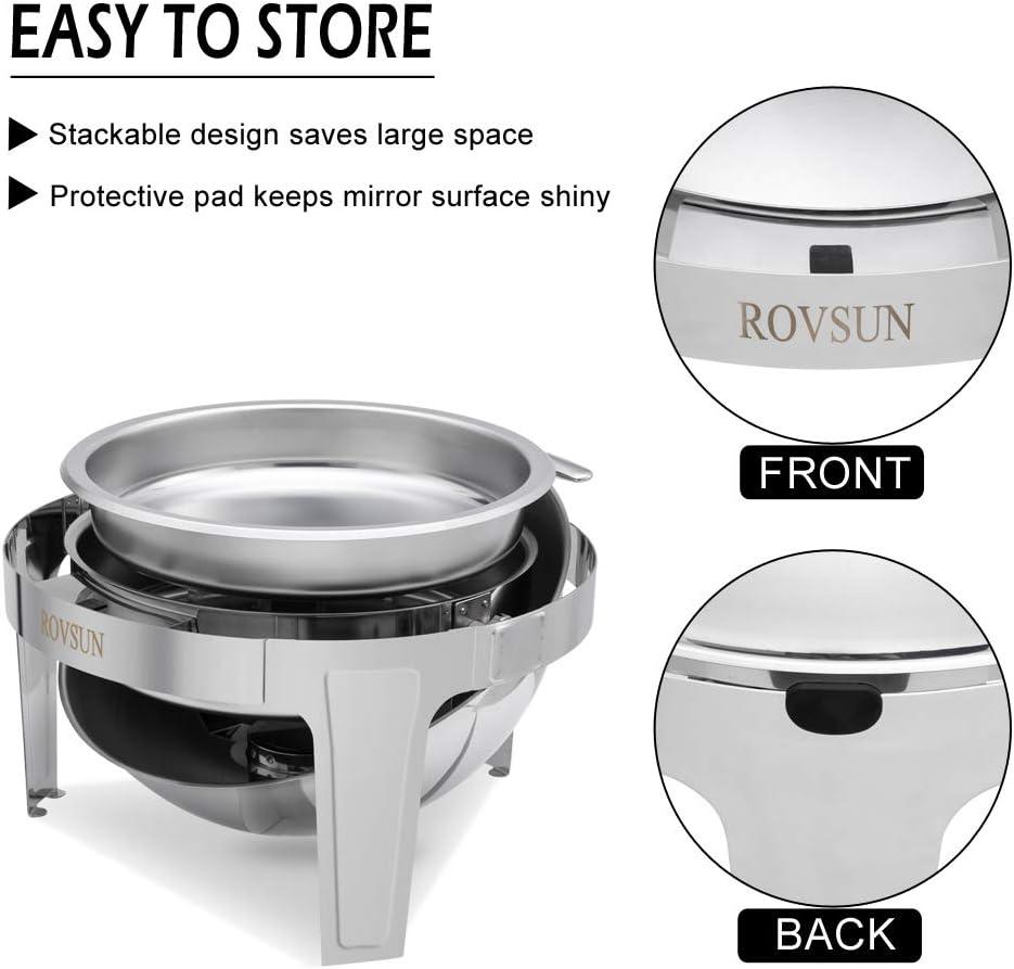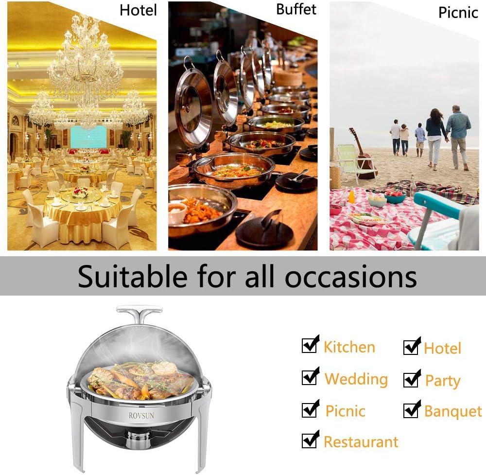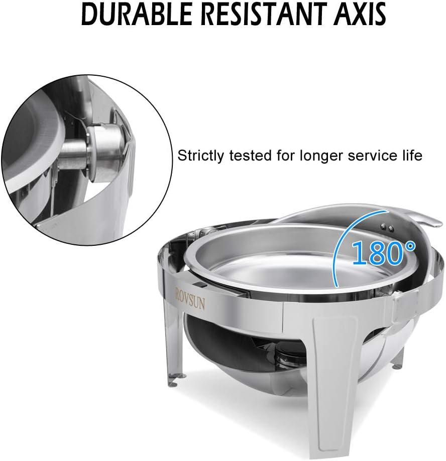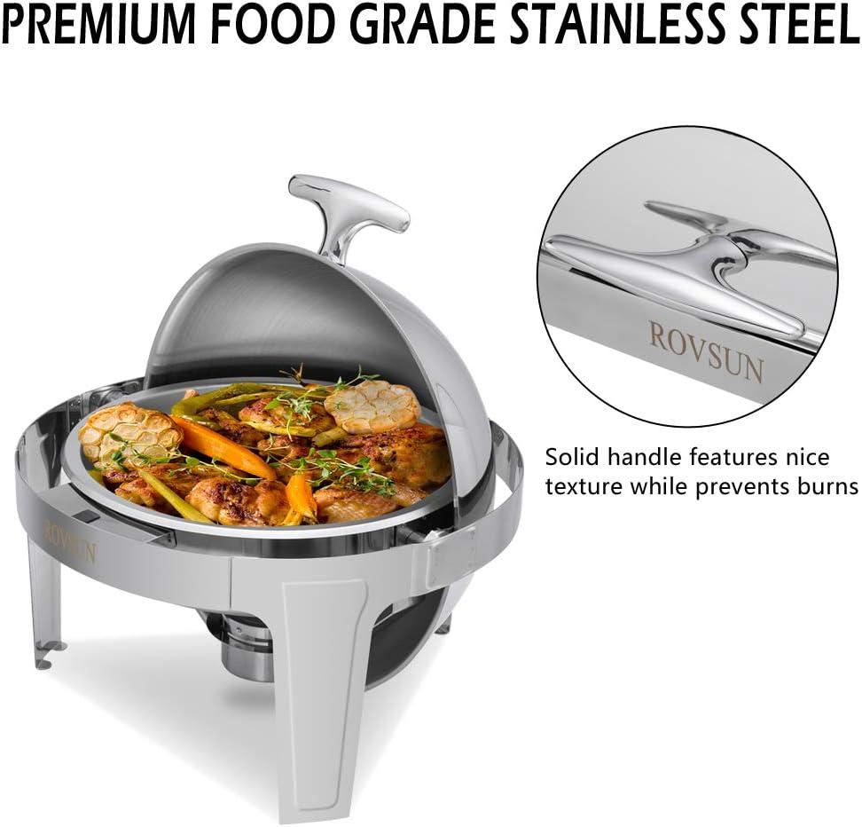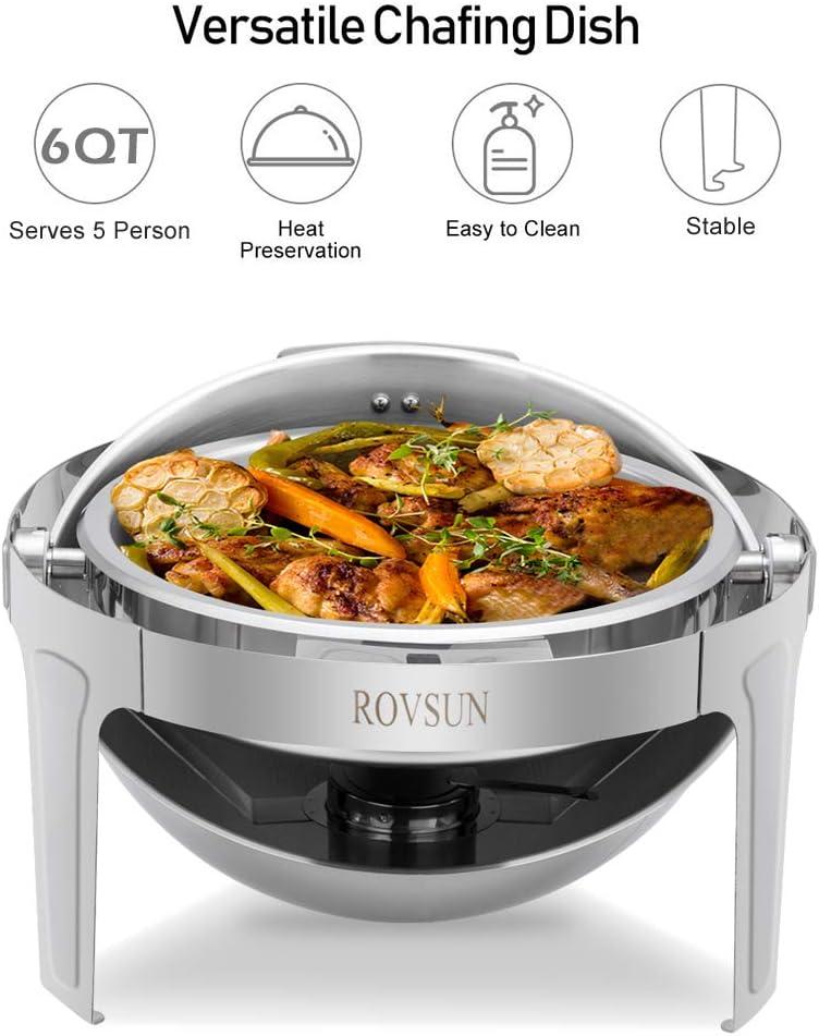ROVSUN Chafing Dish Buffet Set,6 Quart Roll Top Stainless Steel Chafer, NSF Round Set with Food Pan, Water Pan and Fuel Holders, for Wedding, Parties, Banquet, Catering Events(6 QT-1 Pack)
