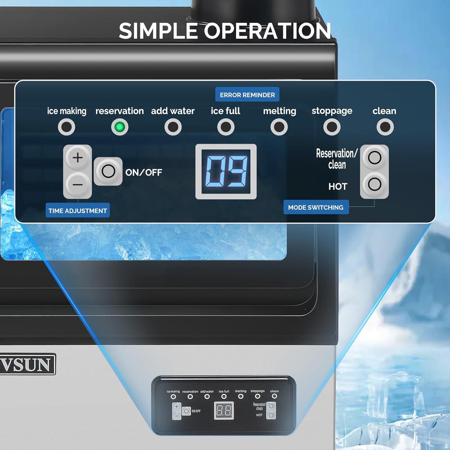 🧊【Automatic Self-cleaning】Say goodbye to manual scrubbing! This commercial ice machine with self-cleaning feature simplifies maintenance, saving you time and ensuring your ice is always fresh and clean, meeting the health standards