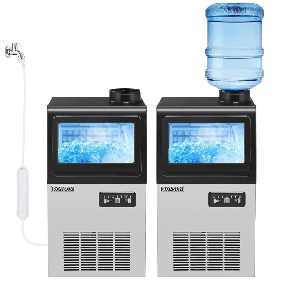 imageROVSUN Commercial Ice Maker Machine 110LBS24H with 2 Water Inlets Freestanding Ice Machine with 24lbs Storage Bin Ice Scoop ampamp Water Filter for Home Office Restaurant Bar Cafe90LB