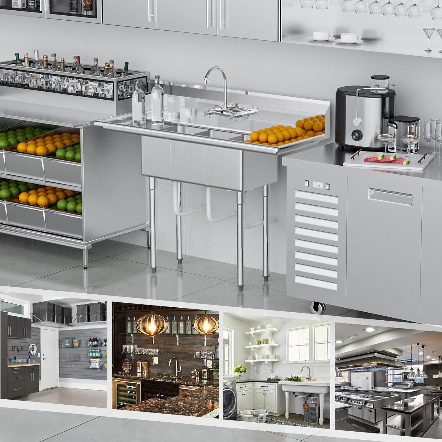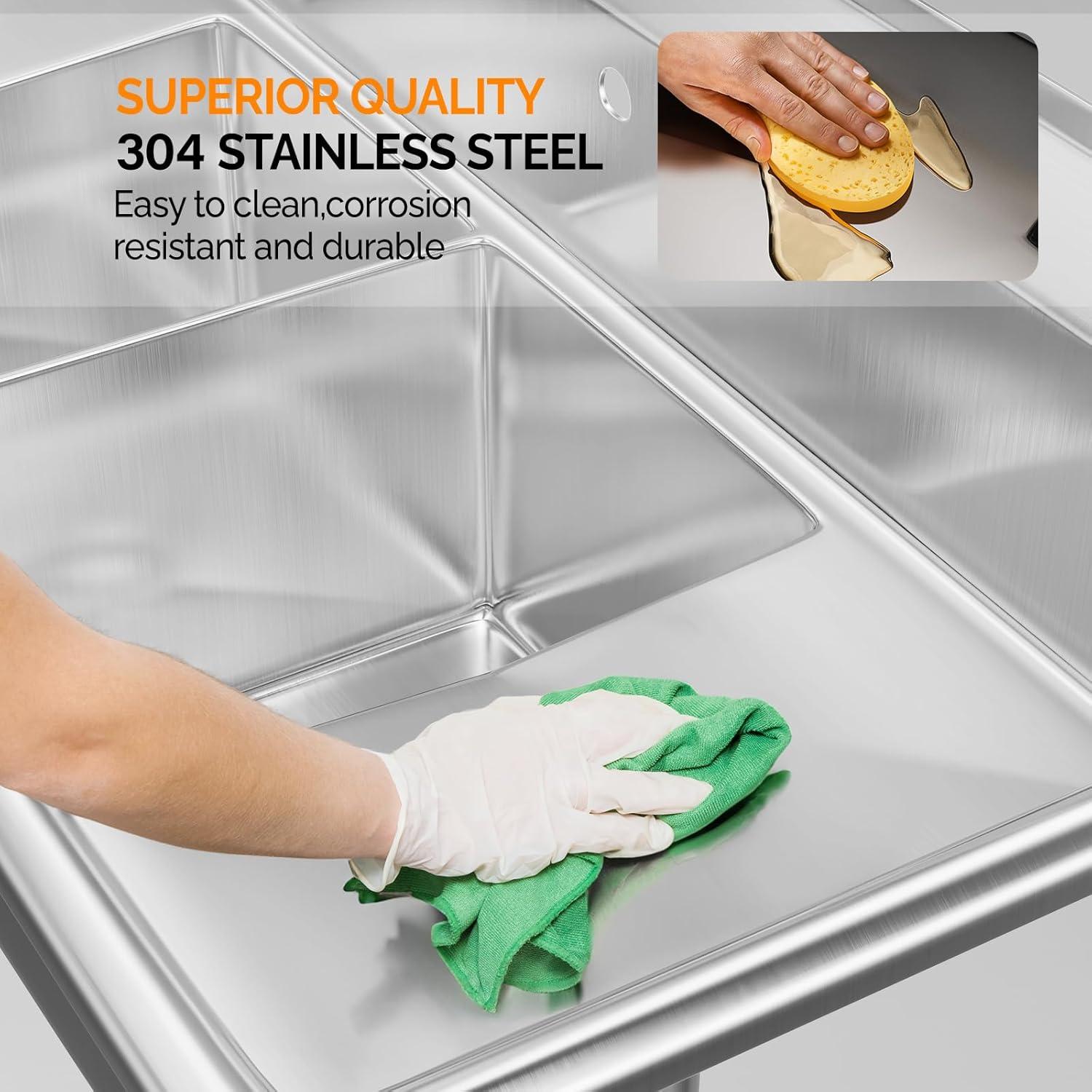 【High-quality Stainless Steel】: Made of high-quality stainless steel, this sink is rust-resistant and corrosion-resistant, ensuring durability in the fast-paced commercial kitchen environment. Stainless steel surface smooth, easy to clean.