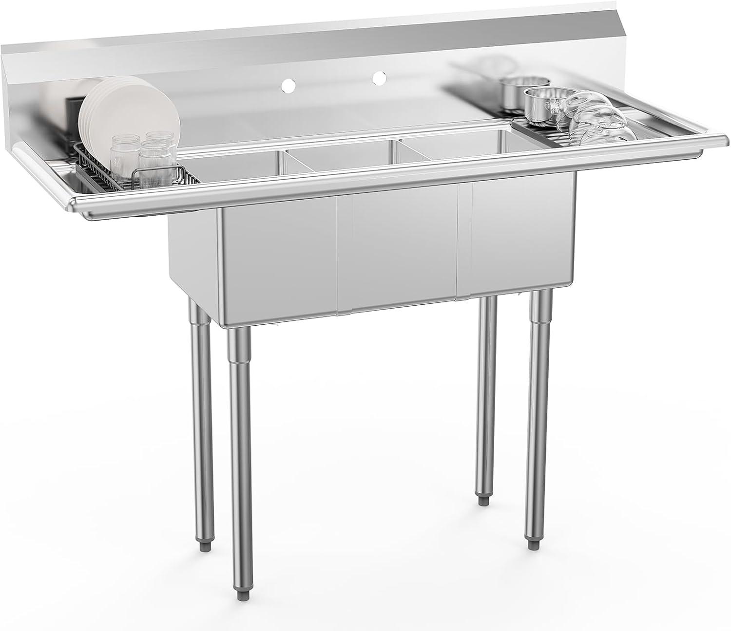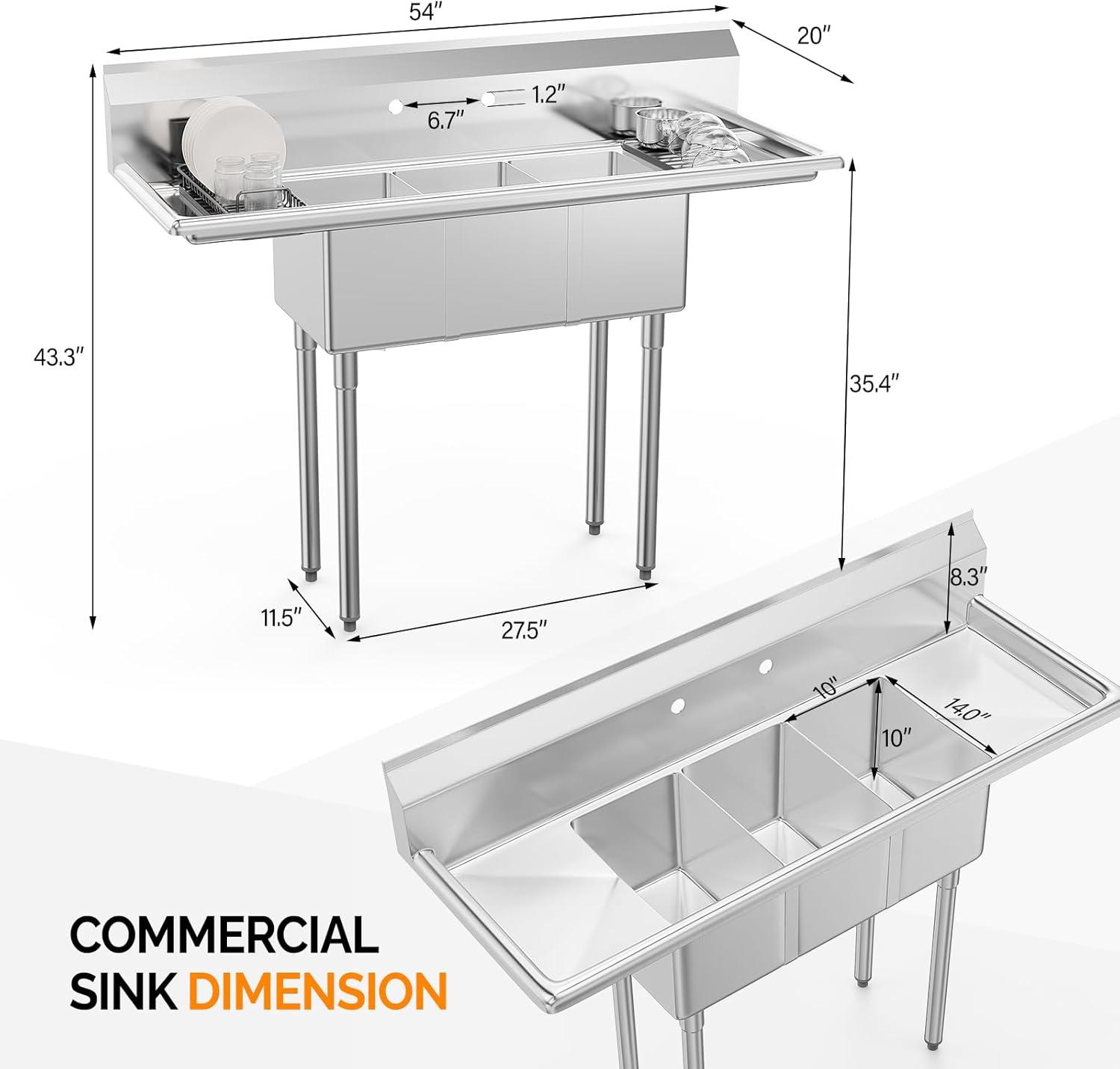 【Wide applicability】: This sink is not only suitable for commercial kitchens, but also widely used in laundry rooms, bars, restaurants, garages and other occasions. The sink is designed with side panels that provide plenty of space for washing and handling food. Whether it is for business or home use, it meets your needs and offers maximum convenience.
