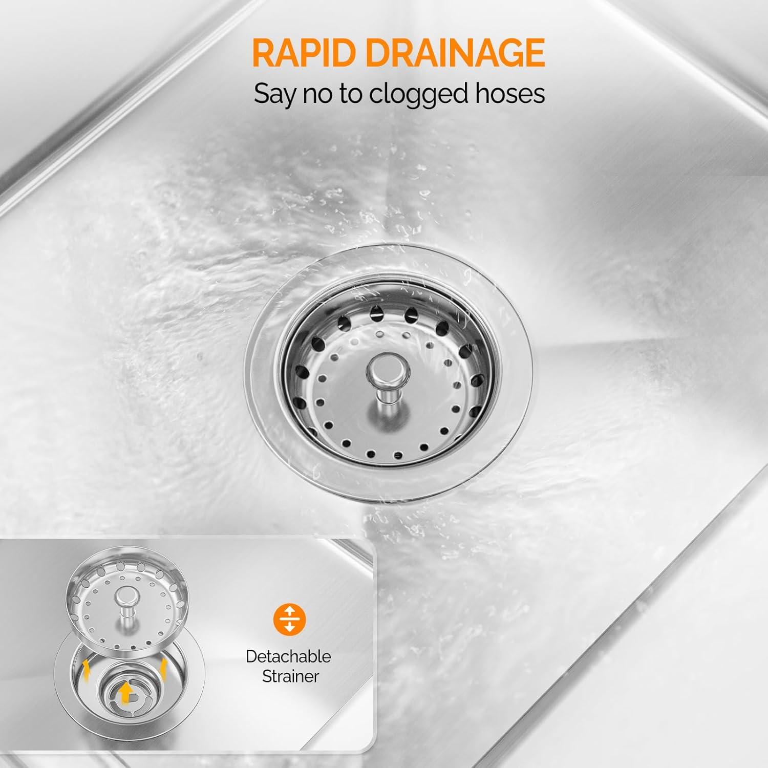 【Easy to Clean and Maintain】: Stainless steel surfaces and round bowl corners make cleaning a breeze. The drainage system has a multi-layer sealed design with a removable filter to effectively prevent food debris from clogging the drain.