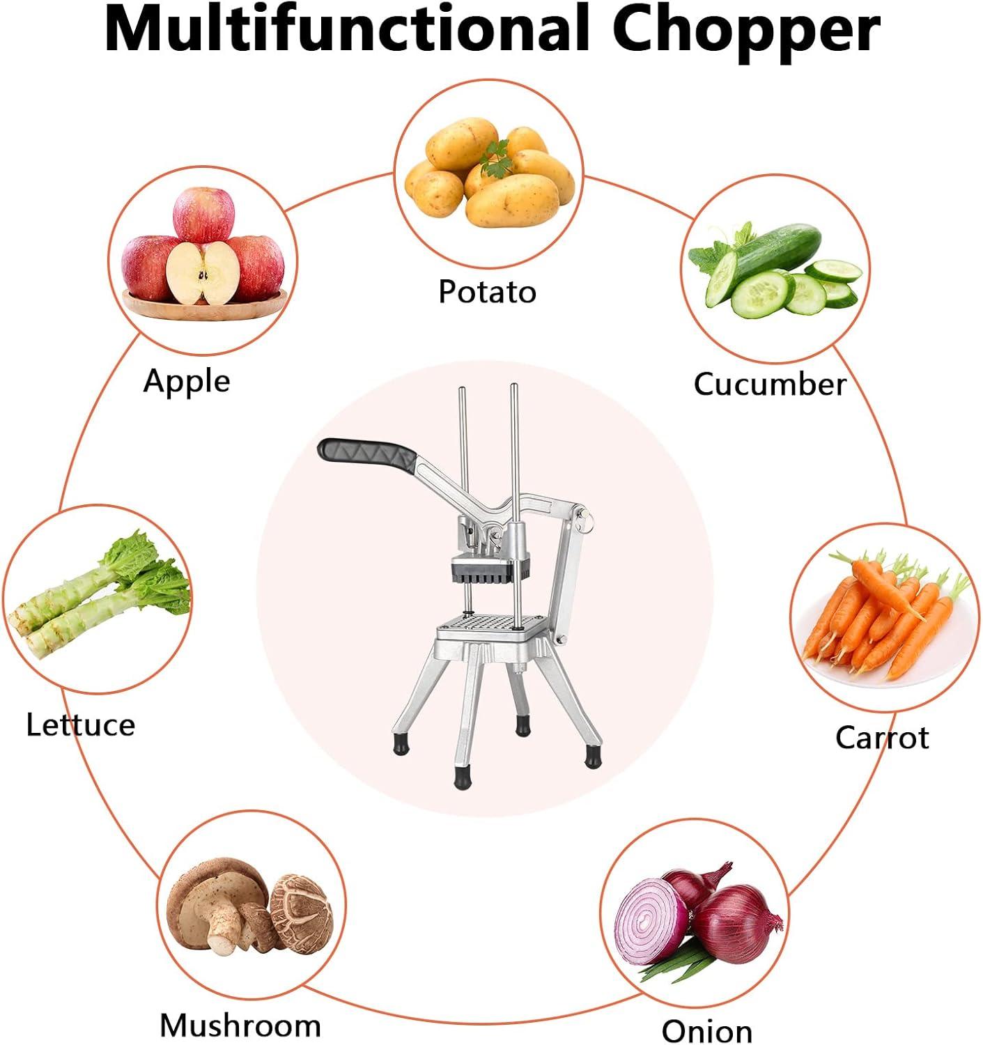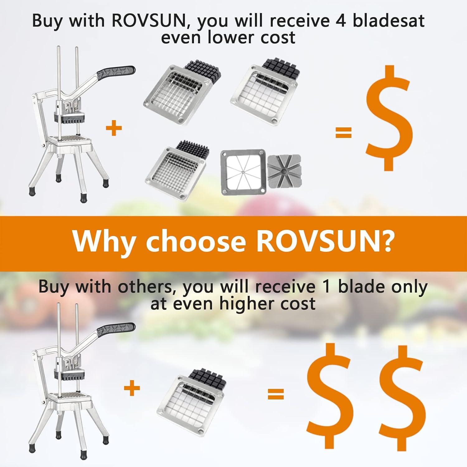 ROVSUN Commercial Vegetable Chopper French Fry Cutter with 4 Sizes Blades, Potato Dicer Slicer Fruit Chopper Stainless Steel for Restaurant, Home & Kitchen, 1/2″, 3/8″, 1/4″ & 8-Wedge Blades(Hand Pressure Style)