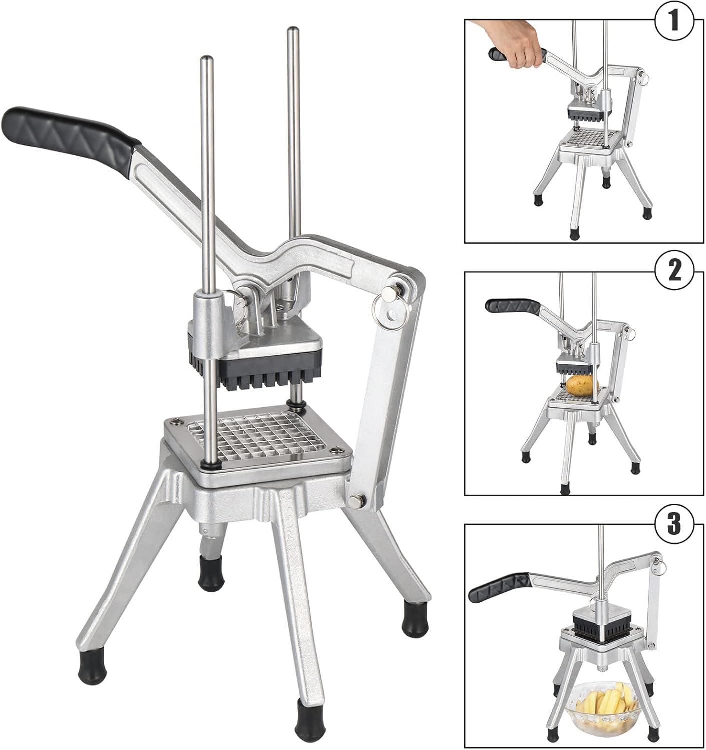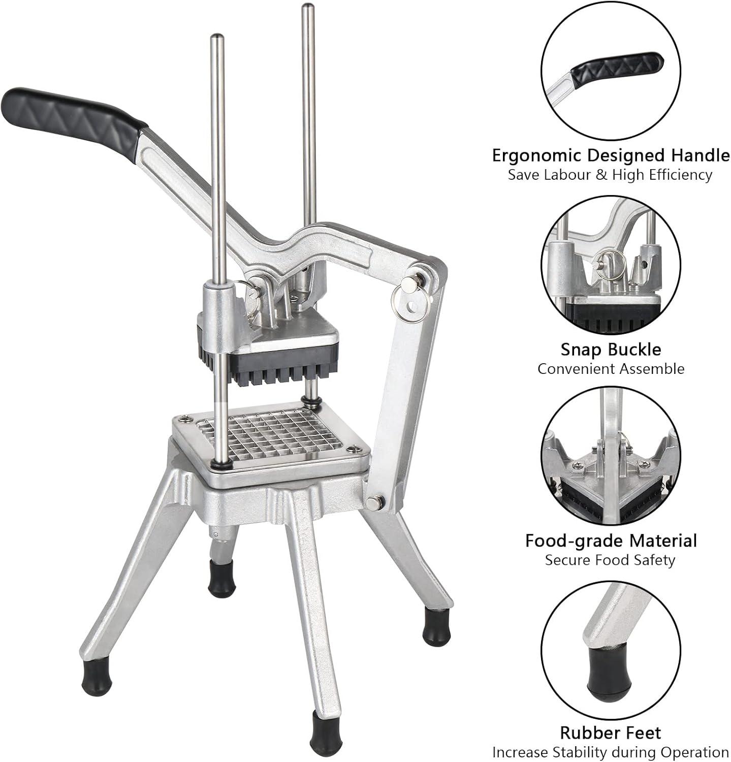 UNIQUE DESIGN: The thick foundation provides more stability when operate this French Fry cutter. This cutter can grasp the surface of the counter more strongly with the non-slip feet. This considerate design ensures the safety and efficiency when you operate it
