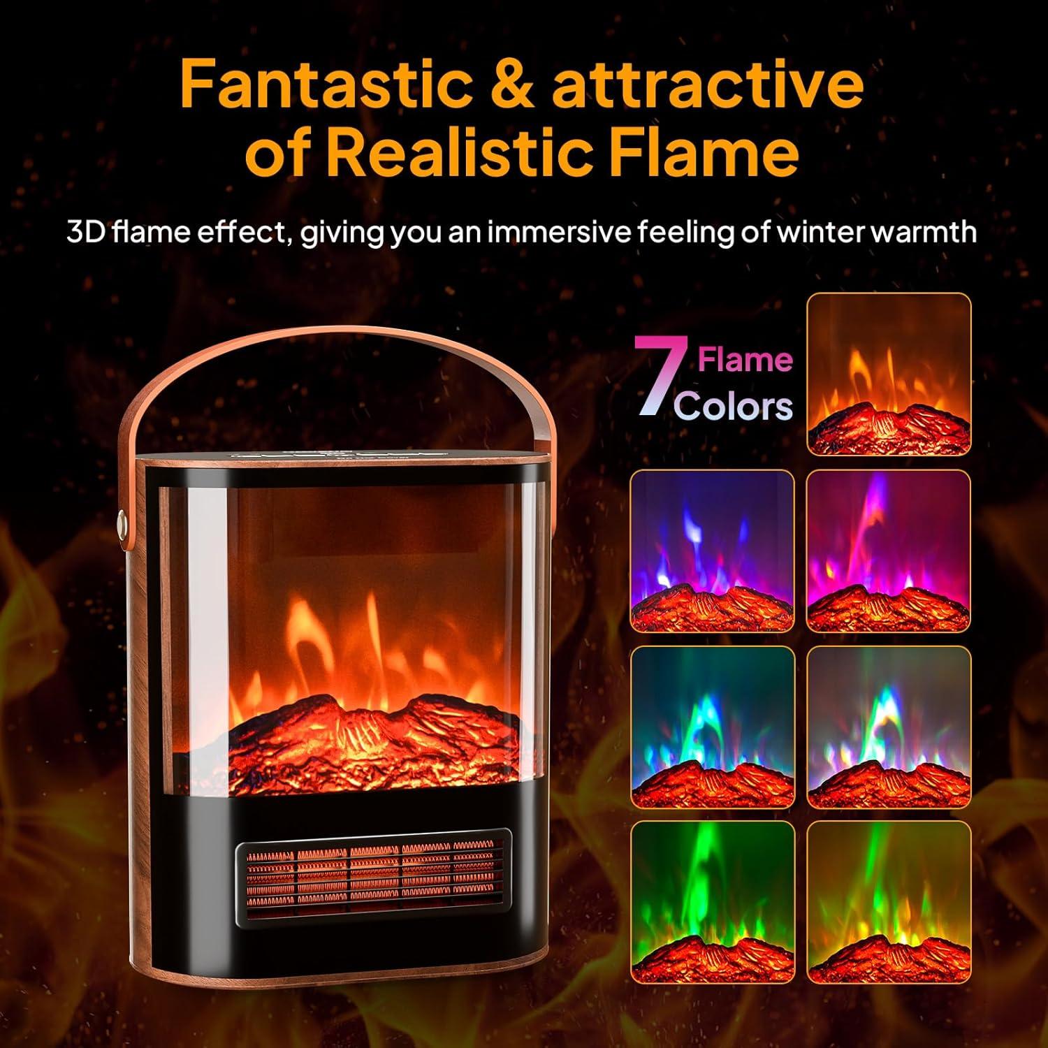 🔥 Triple Protection: The small fireplace heater has a built-in tip-over protection button. When the heater is accidentally knocked over, it automatically cuts off the power to prevent accidents. Overheat protection ensures that the heater will not overheat even if it works for a long time. Moreover, it has additional child lock button. It is very suitable for families with children and pets