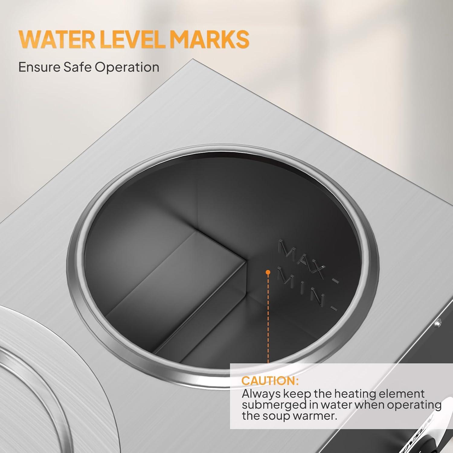 【Versatile Applications】 Perfect for restaurants, hotels, catering services, church events, or any food service operation. Whether you're serving hot soups, maintaining sauce temperatures, or keeping prepared foods warm, this commercial soup warmer adapts to various culinary needs while providing consistent, reliable performance