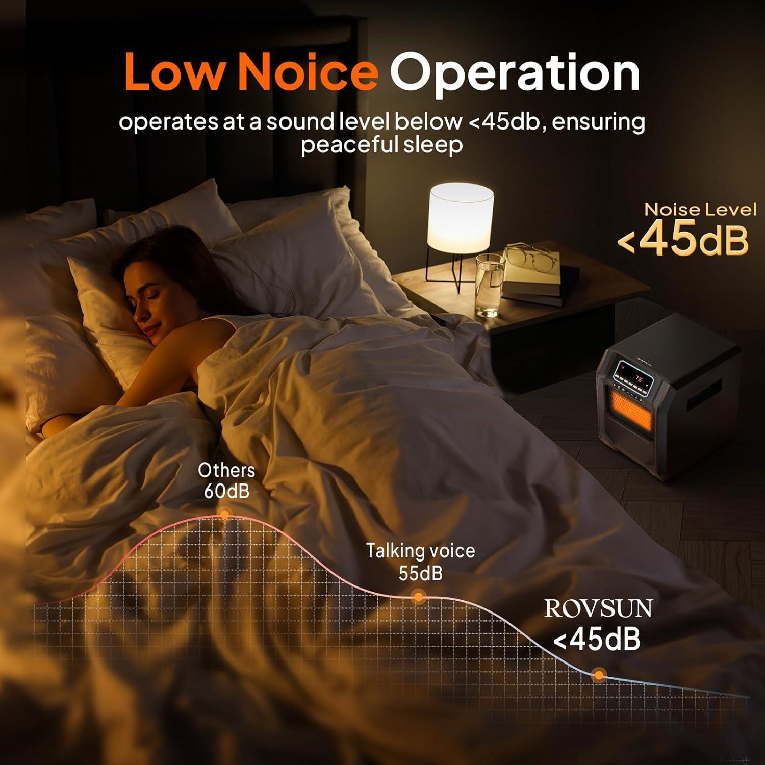 🔥IDEAL FOR INDOOR USE: The electric heater is designed with quartz infrared heating elements. It is ideal for indoor use, such as bedroom and living room. And its working decibel is not more than 59db.