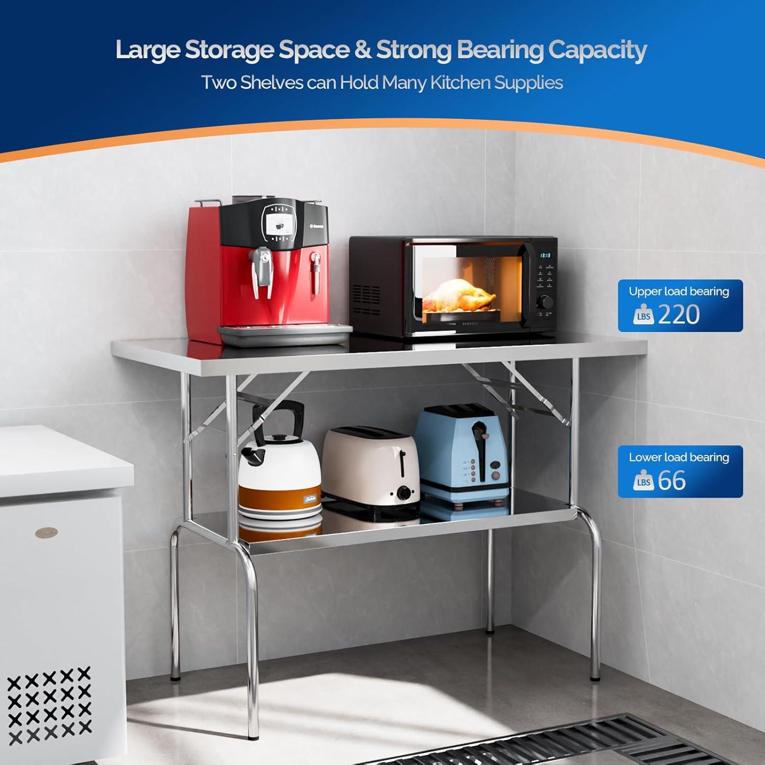 ➤【Large Storage Space】Undershelf providing you with more storage space, the table top load capacity: lbs; Undershelf load capacity: lbs. Offers you enough storage room to store microwave oven, kitchen utensils or any other tools.