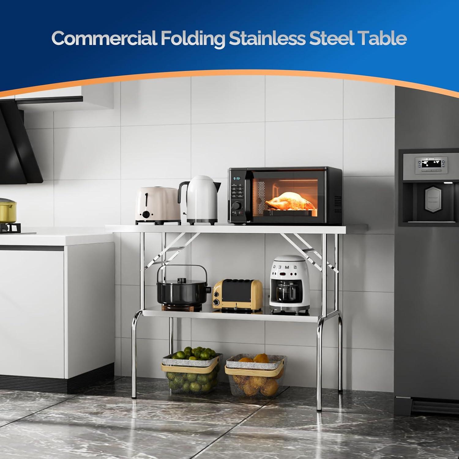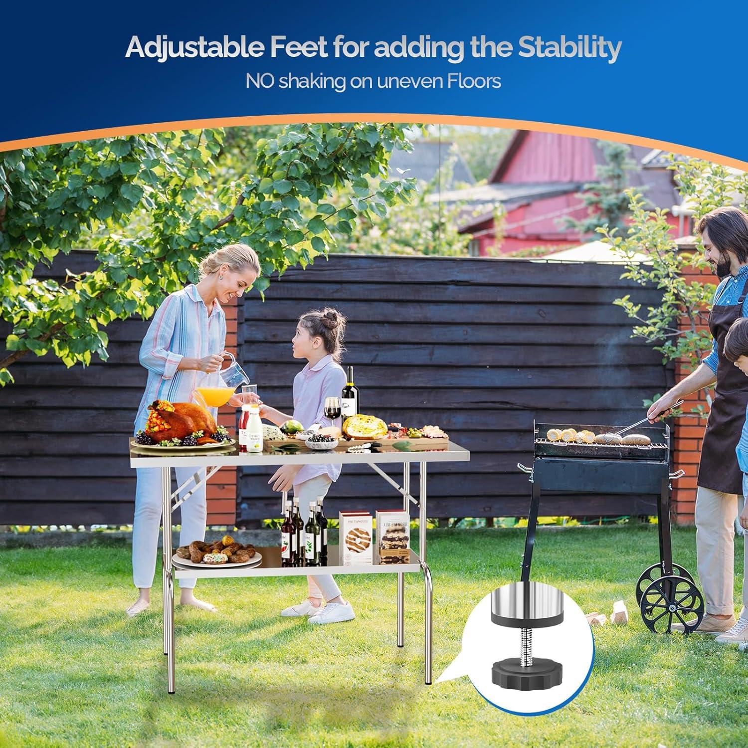 ➤【Folding Stainless Steel Table】Features a folding design that allows for quick and easy setup without the need for installation. And it can be foldable when not use, convenient for storage transport and space saving.