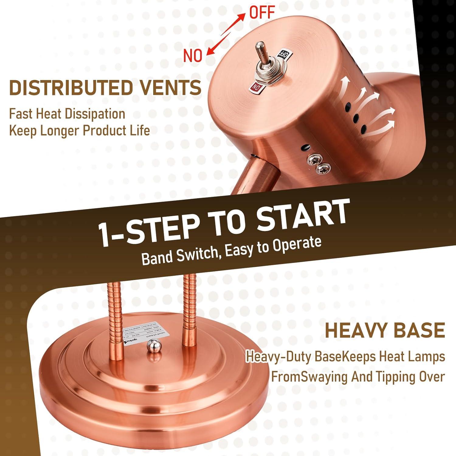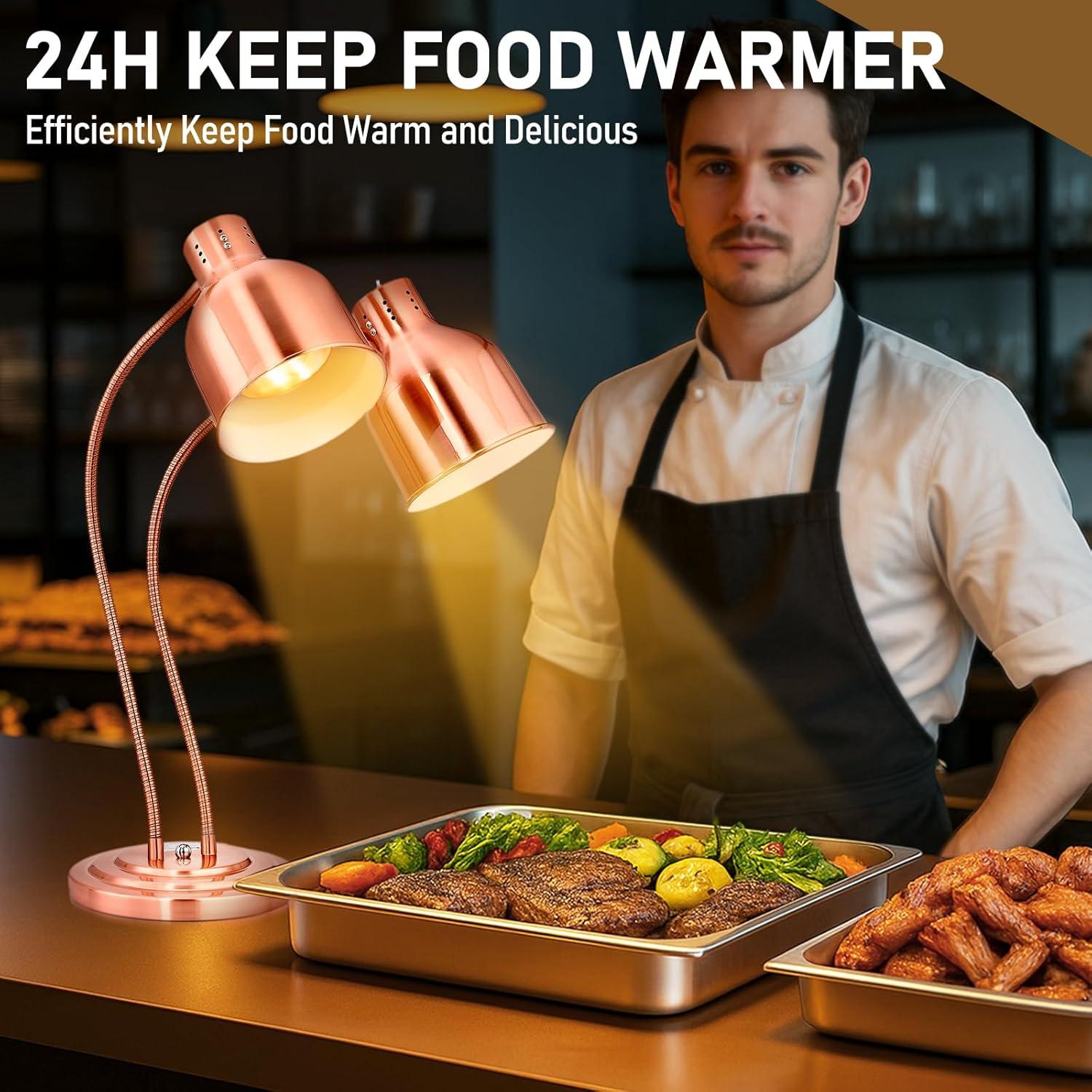 Powerful 2-Head Bulb Design: Equipped with two 250W high-power bulbs, the ROVSUN food heat lamp ensures rapid, even, and long-lasting warmth to keep your dishes perfectly heated. Whether you're warming up appetizers or large entrees, each bulb delivers consistent heat to maintain the perfect temperature, ensuring your food is ready to serve at all times.