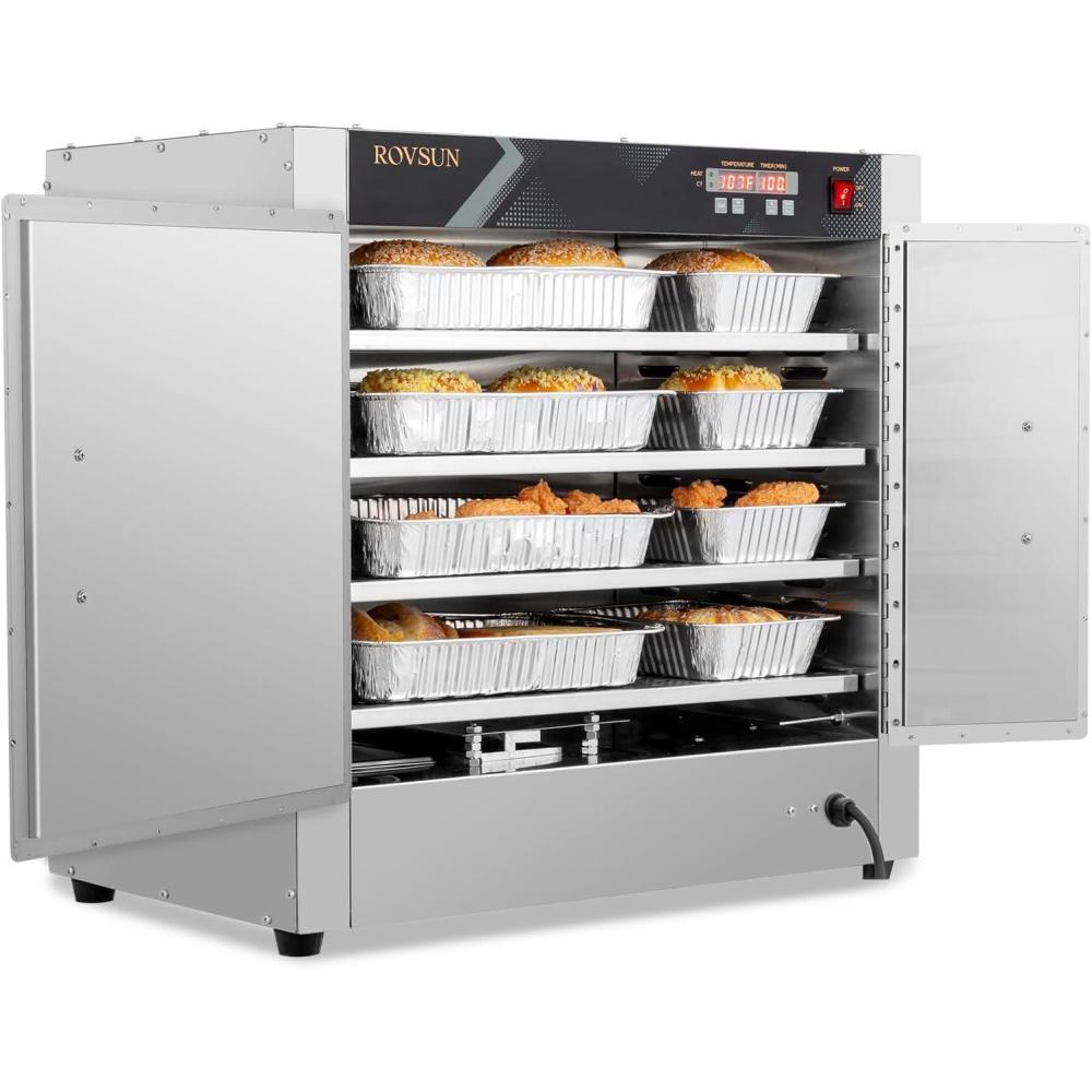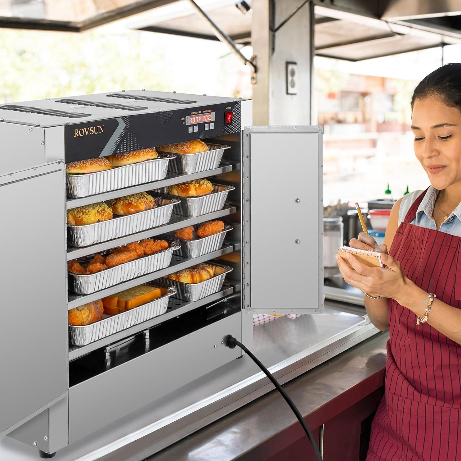 imageROVSUN Hot Box Food Warmer Pizza Warmer wWater Tray Removable Shelves Hot Holding Cabinet Pretzel Warmer Commercial Electric Food Warmer Countertop for Restaurant Catering Buffet 4Tier 800W