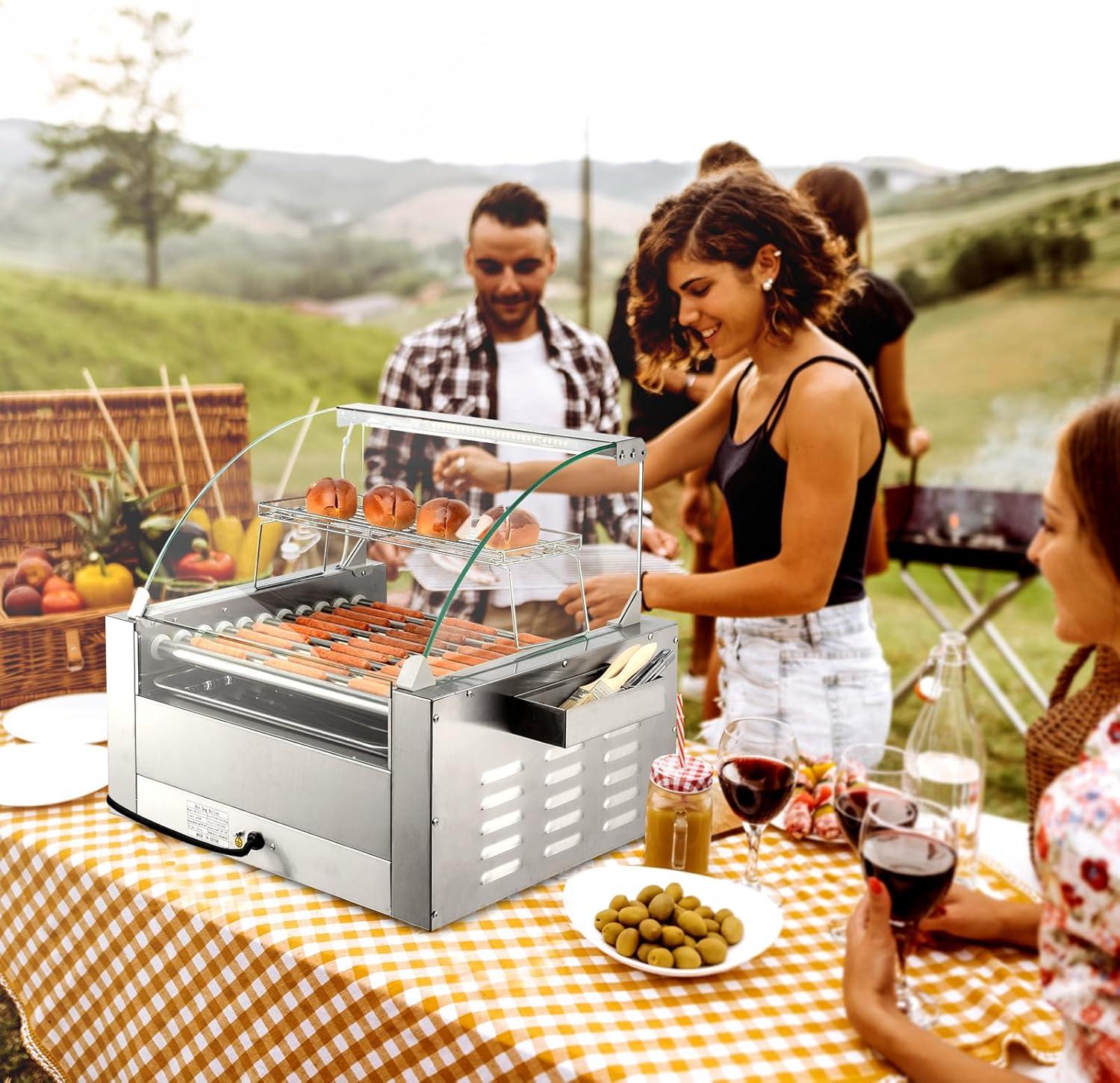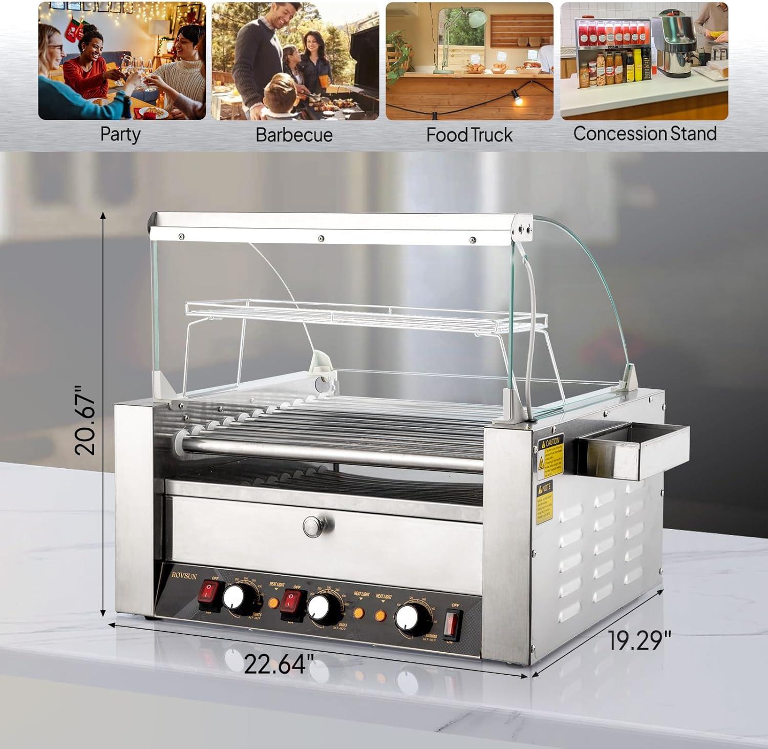 The ROVSUN 5-7 Hot Dog Roller Cart is perfect for daily and commercial use. Whether you are a concession stand owner, party planner, or just love hot dogs, this hot dog grill cart with wheels is the perfect addition! The durable construction ensures that it will last for years to use, making it a reliable option for your food service needs.