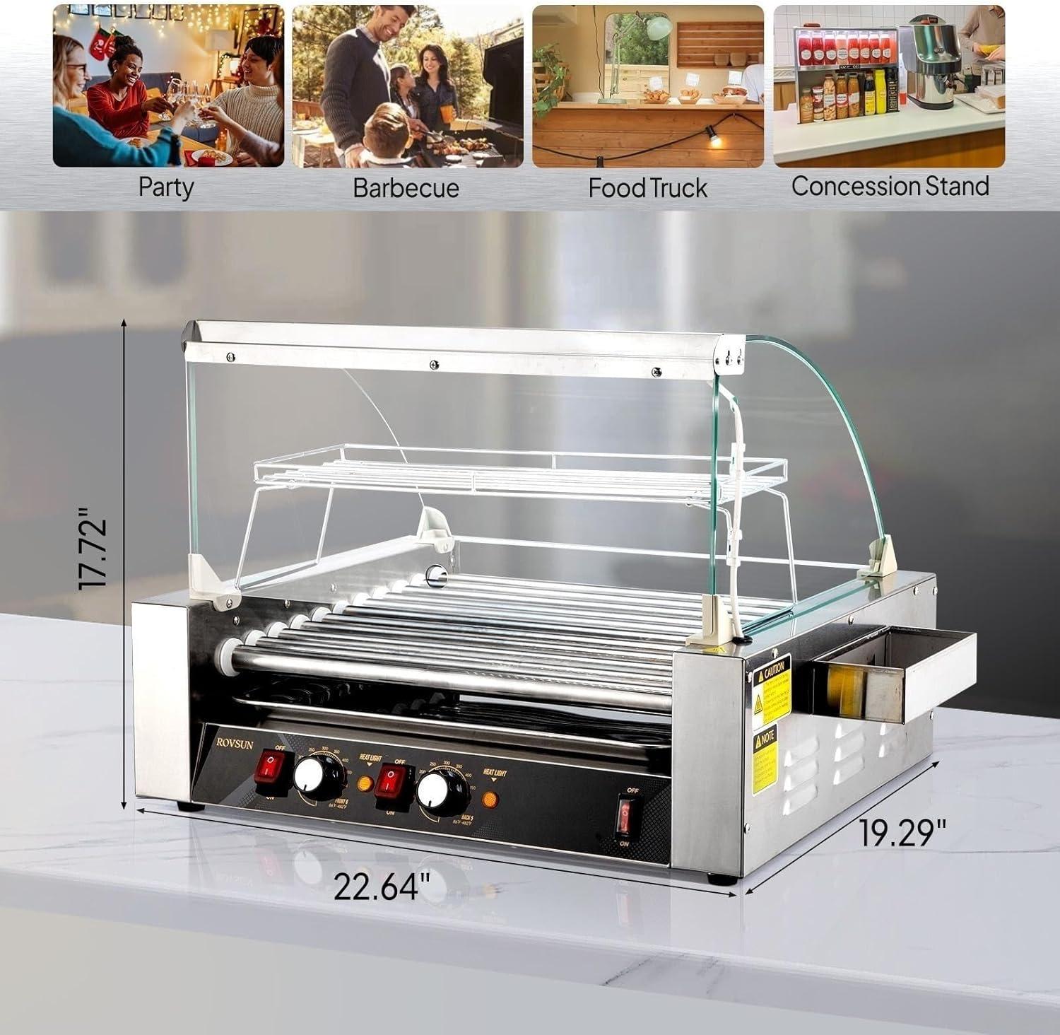 【Large Capacity】With 7 stainless steel rollers, you could grill up to 18 hotdogs at once. 1050W powerful motor ensures fast cooking. Compact size makes it easy to store, which is perfect for parties, events, gatherings, and concession stands to cook sausages, egg rolls, etc.