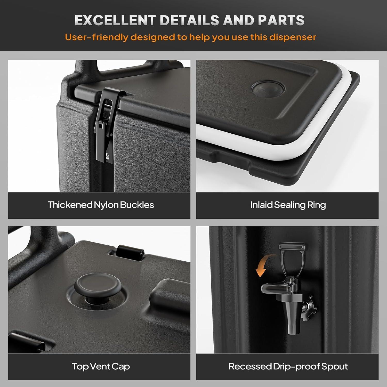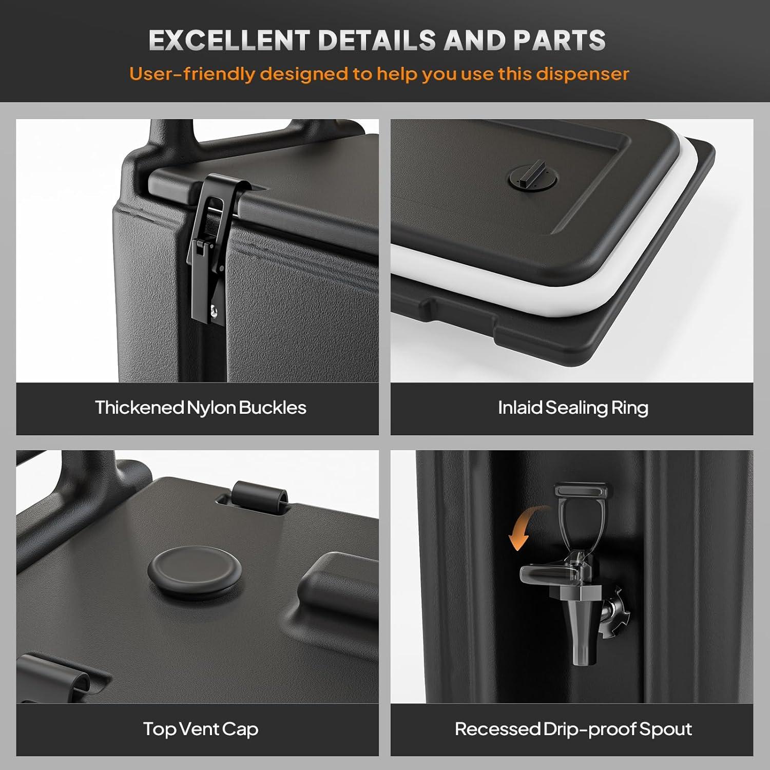 【Premium Insulation】 Keep your hot or cold beverages at the perfect temperature up to 6 hours or refrigerated for 3-5 hours with our advanced double-wall drink dispenser. The embedded seal ring enhances the insulation effect. Whether you're hosting a backyard BBQ or a corporate event, your drinks stay refreshingly cold or comfortingly hot