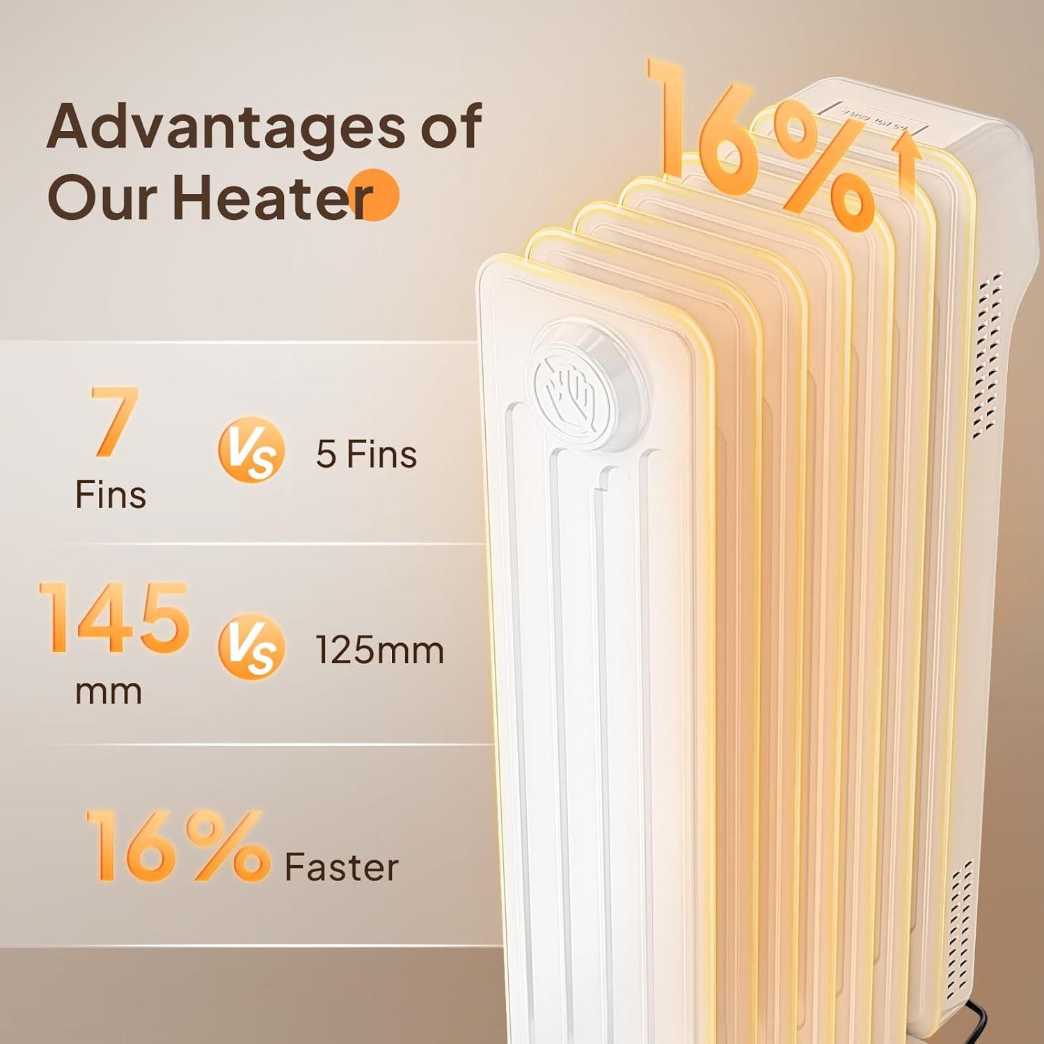 đŸ”„ă€Silent Operation & Sleek Design】Experience whisper-quiet performance. With no noisy fans, this oil filled radiator heater operates in complete silence, making it ideal for uninterrupted sleep, focused work, or peaceful relaxation in bedrooms, offices, or living rooms