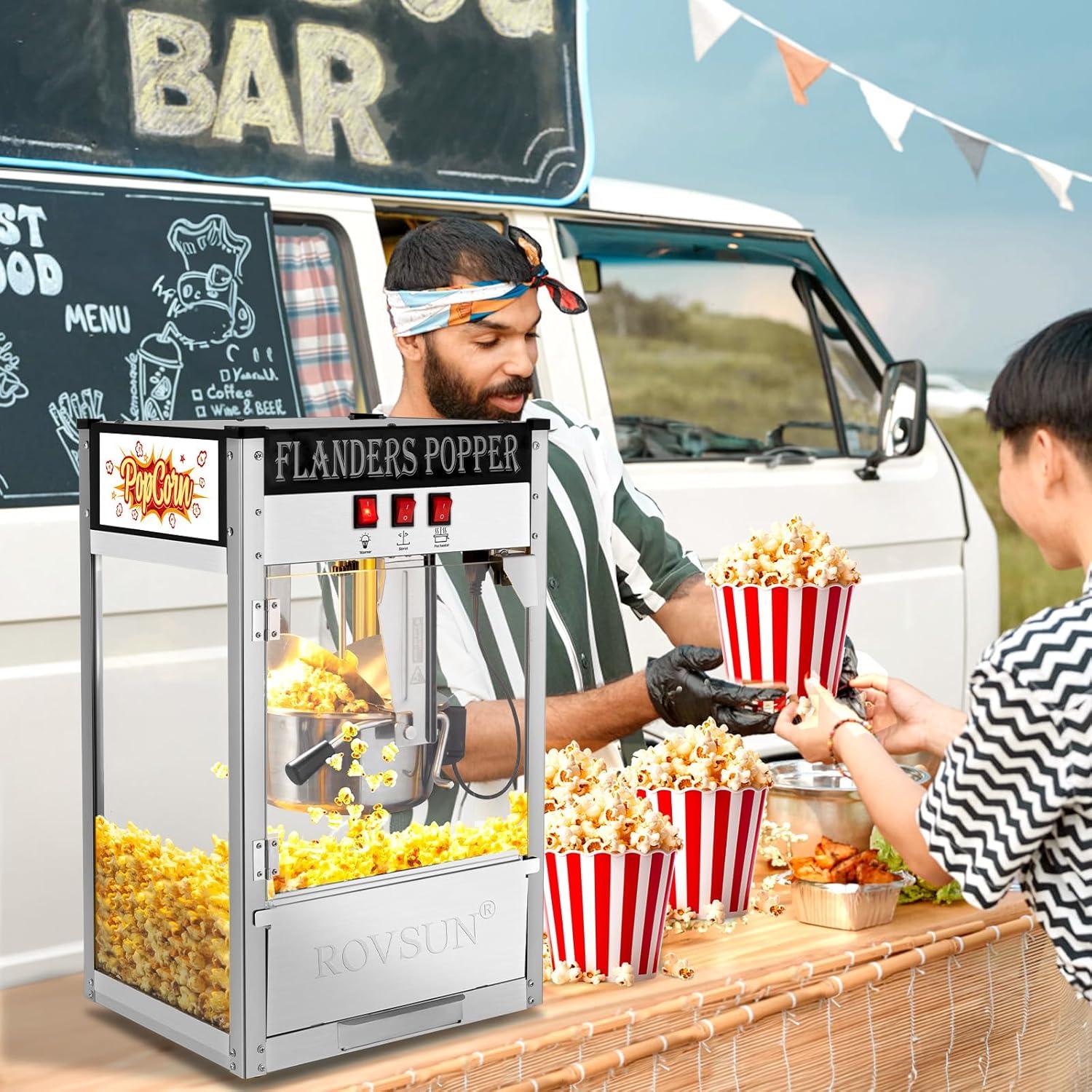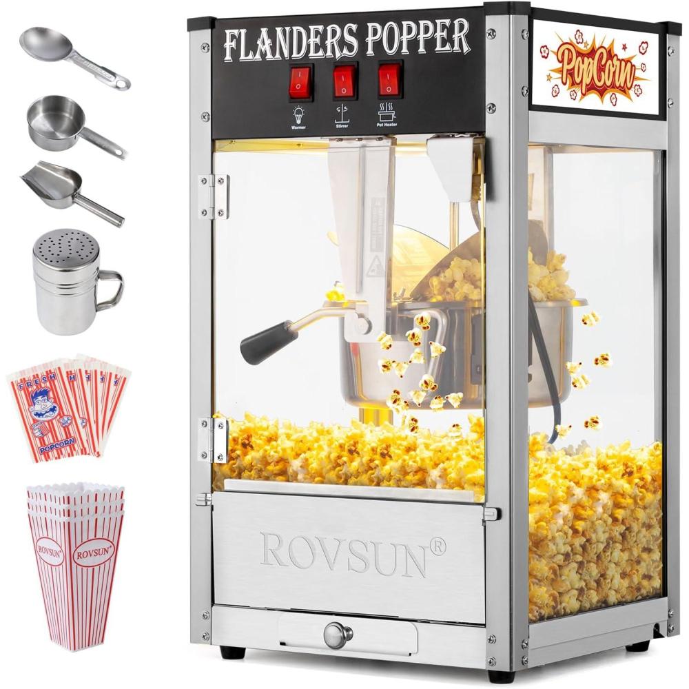 ✔ Comes with Accessories: The commercial popcorn machine comes with 1 popcorn scoop, 1 oil measuring spoon, 1 corn measuring spoon, 30 popcorn bags, 3 popcorn cups and 1 power shaker
