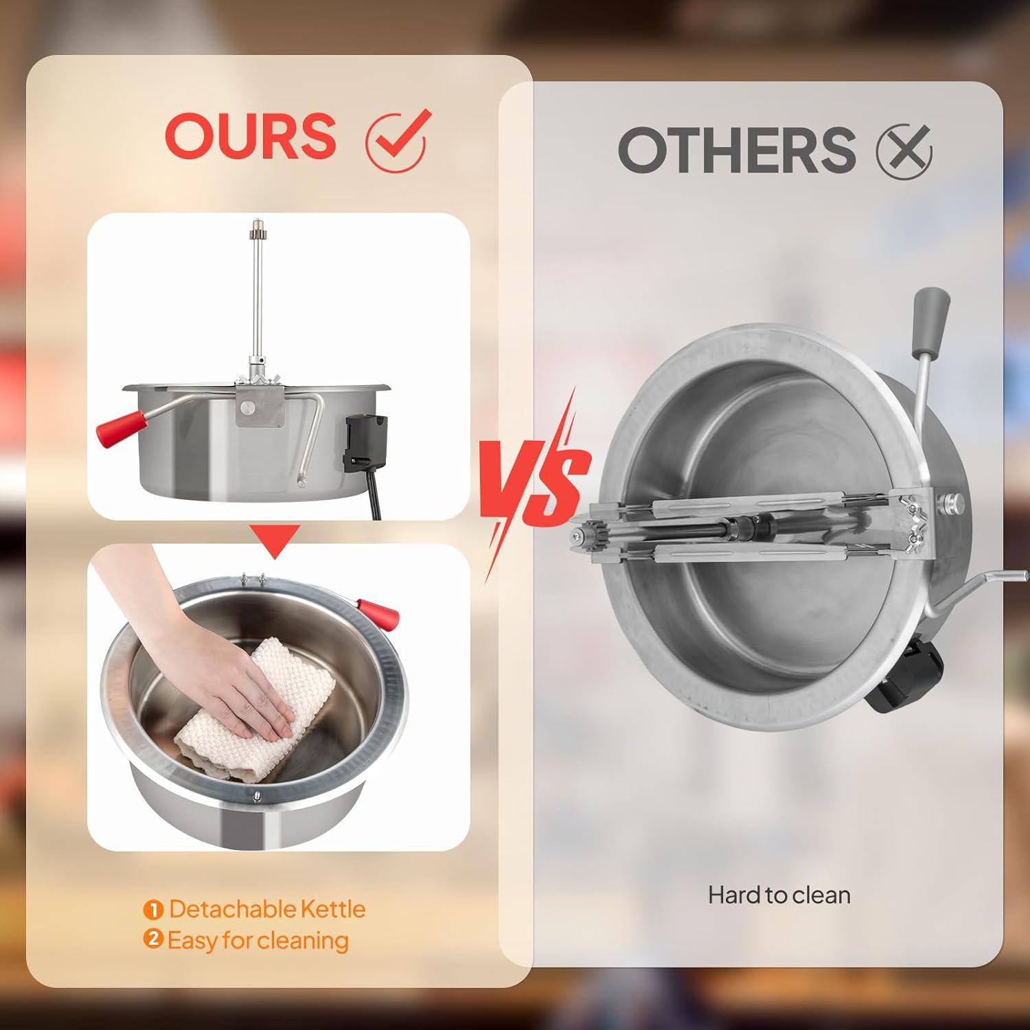 ✔ Large Production & Easy Cleaning: 10-ounce kettle can make up to 4 gallons of popcorn per batch to satisfy large demand. Detachable design for easy cleaning after use. NOTE: Please allow at least 1 hour for the kettle to cool down before cleaning