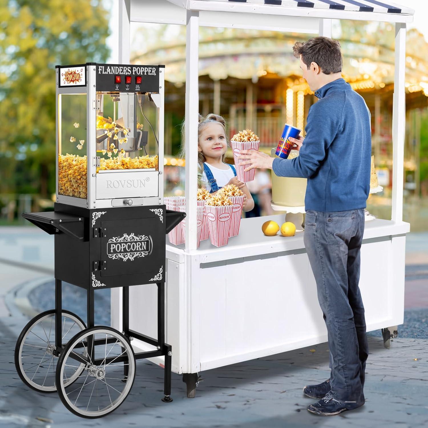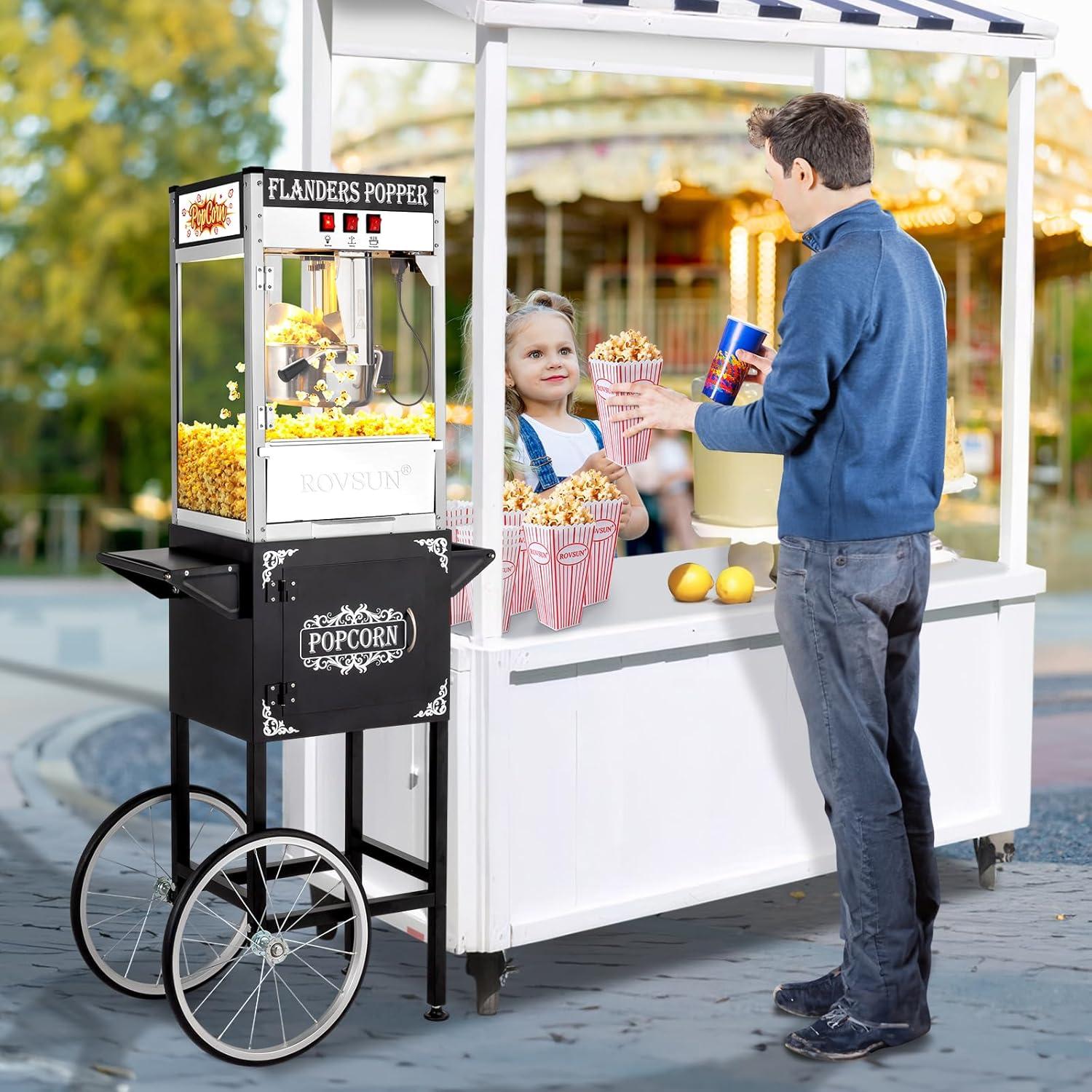 ROVSUN Popcorn Machine Movie Theater Style with Cart & Wheels, 8 Ounce Kettle Makes Up to 32 Cups Popcorn Maker with Popcorn Scoop, Oil Spoon & 3 Popcorn Cups for Commercial Home, ETL, Red(Black)