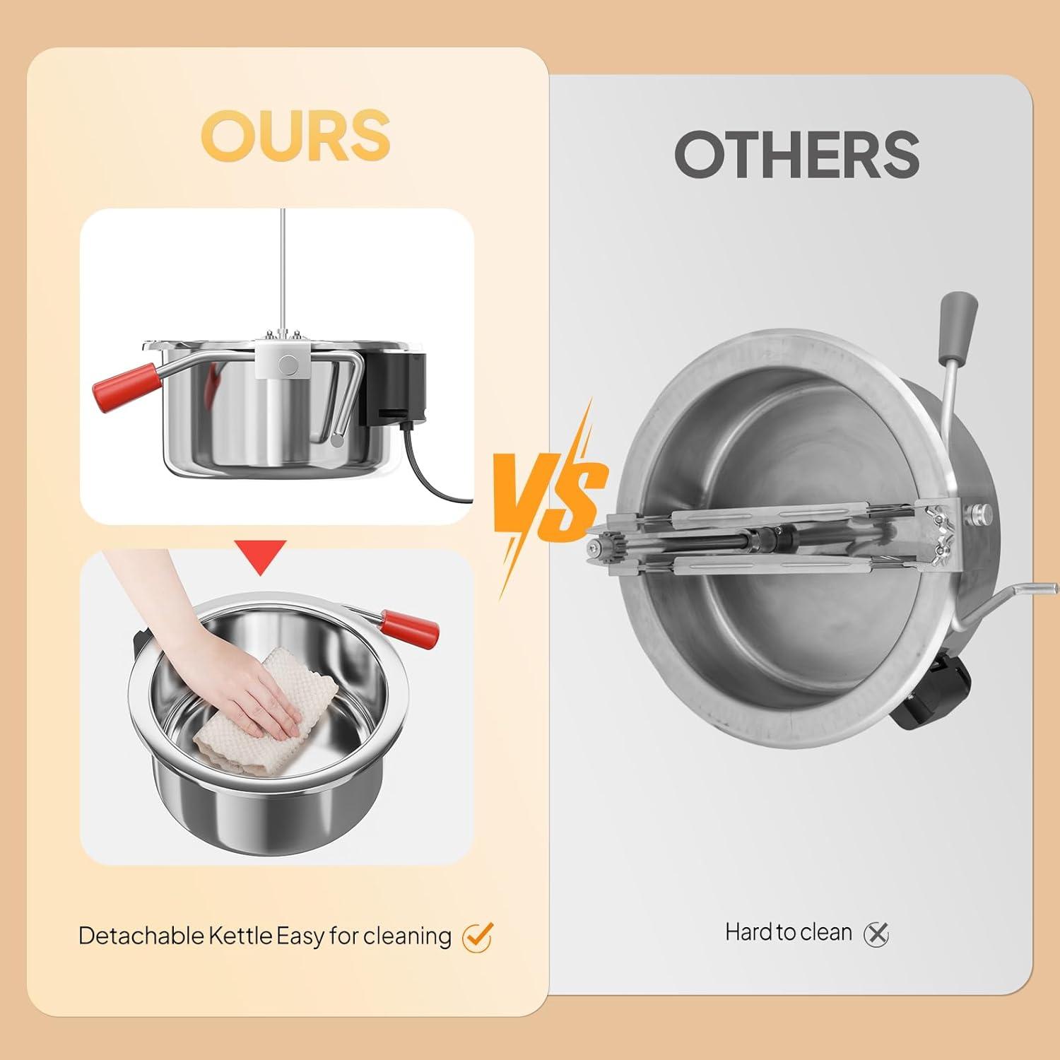 HIGH QUALITY MATERIAL: The kettle of the popcorn machine is made of 304 stainless steel. Popcorn made by the machine will be safe to eat. And the doors are made of tempered glass, which ensures the safety during operation