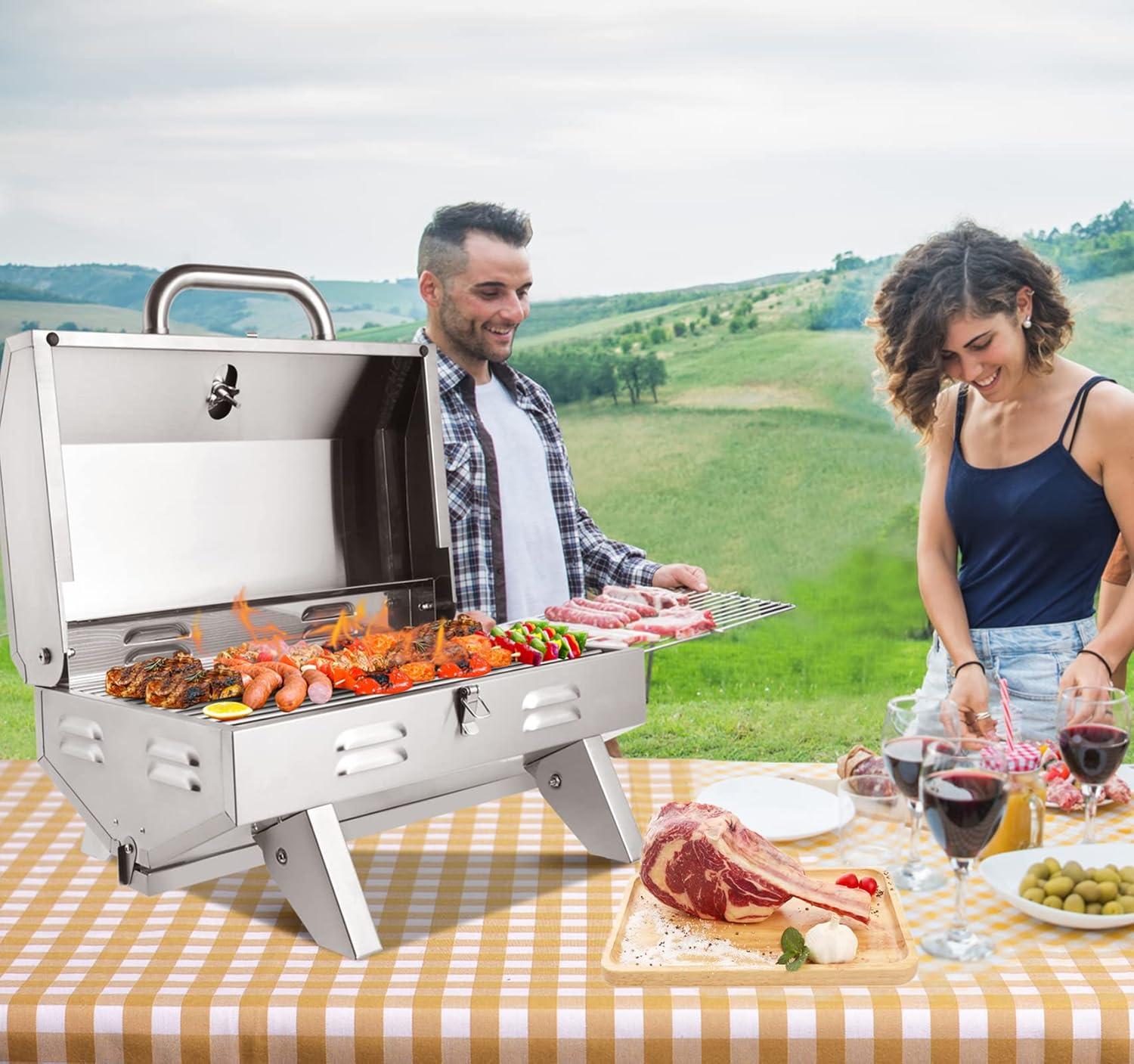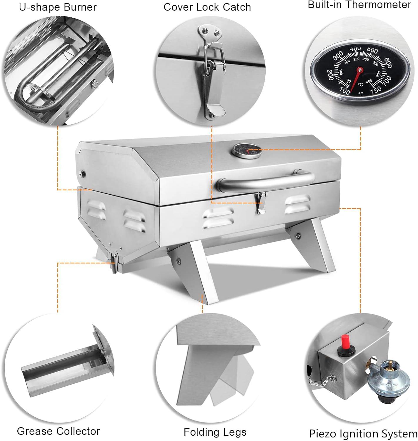 【Easy Control】Portable to cook all foods from bacon wrapped salmon to steaks with ease owing to 10,000 BTU for each burner. With two burners it is sure to have one on and the other not. Then fast cook on one side and then move to the other side for slow cook.