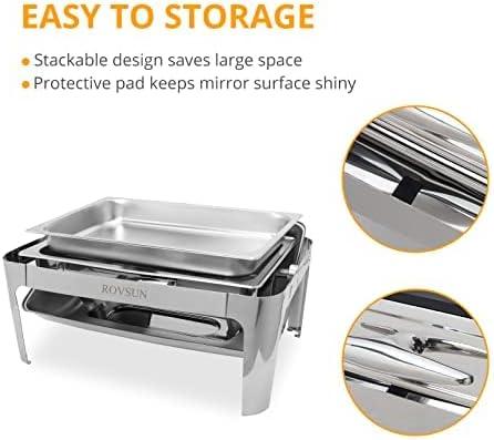 imageROVSUN Roll Top Chafing Dish Buffet SetNSF 9 Quart Rectangular Stainless Steel Chafer for CateringBuffet Servers and Warmers Set with Glass Window for Wedding Parties Banquet Events Full Size2 Pack