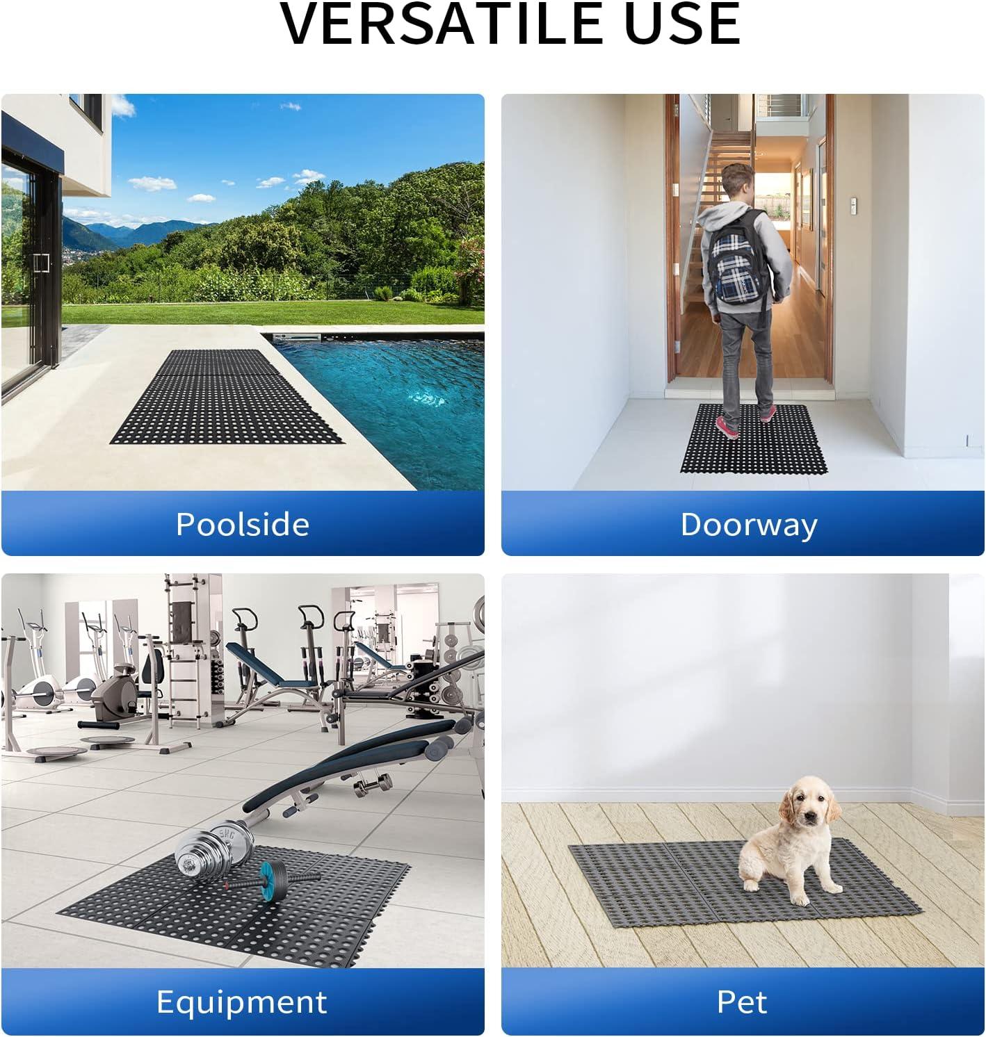✔ DRAIN MAT: Large perforated holes allow liquid and waste to pass through quickly and keep wet areas clean & dry. Perfect for pool side, outdoor shower, hot tub deck, under sink etc.