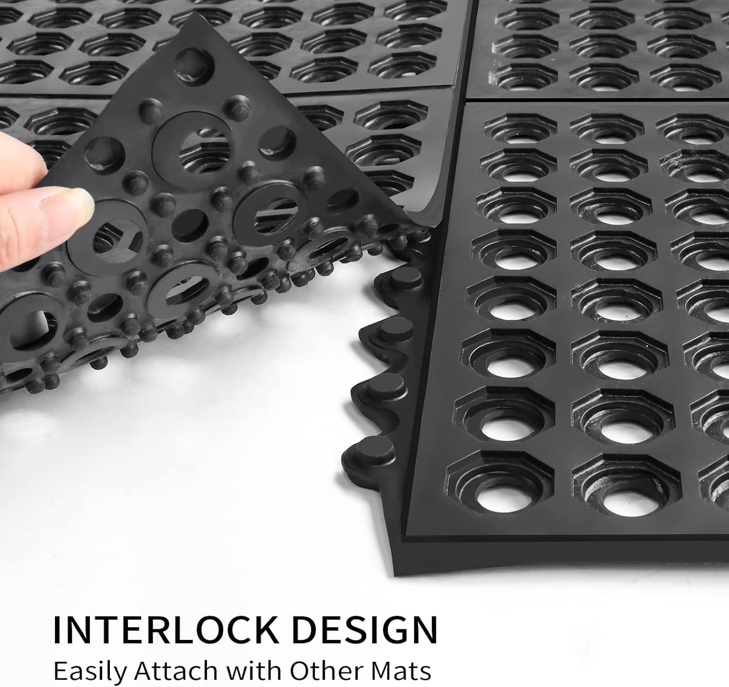 imageROVSUN Rubber Floor Mat with Holes AntiFatigueNonSlip Drainage Mat for Industrial Kitchen Restaurant Bar Bathroom Utility Garage Pool Entry Door Mat Indoor 36 x 60 Red 2Pcs36x 36 Black 4Pcs