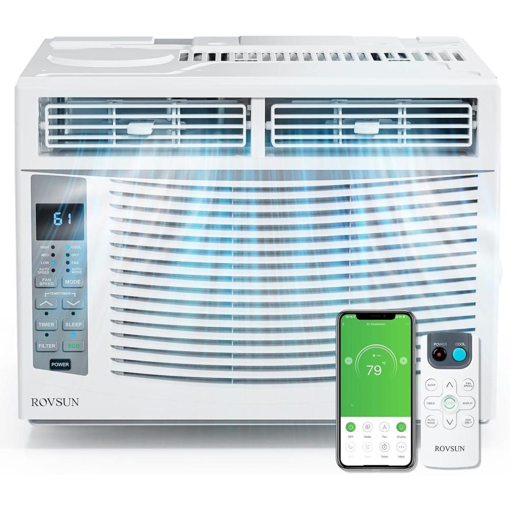 ROVSUN Smart 12000 BTU Window Air Conditioner with WiFi, Energy Saving Window AC Unit with Remote & App Control, Timer Function & Easy Install Kit, for Rooms up to 550 Square Feet, 115V/60Hz, White(6000 BTU WIFI)