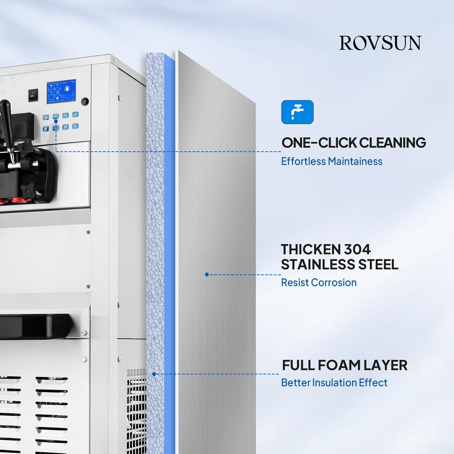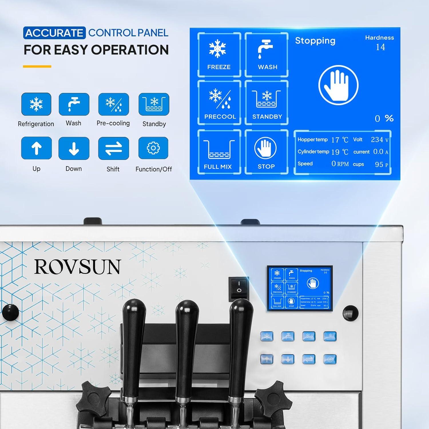 The ROVSUN soft serve ice cream machine is perfect for home and commercial use. With a simple and intuitive interface, our soft serve ice cream machine is quick and easy to use. Premium compressor makes ice cream production more efficient, which makes it a versatile addition to any business or home, allowing you to offer a variety of frozen treats to your customers or guests.