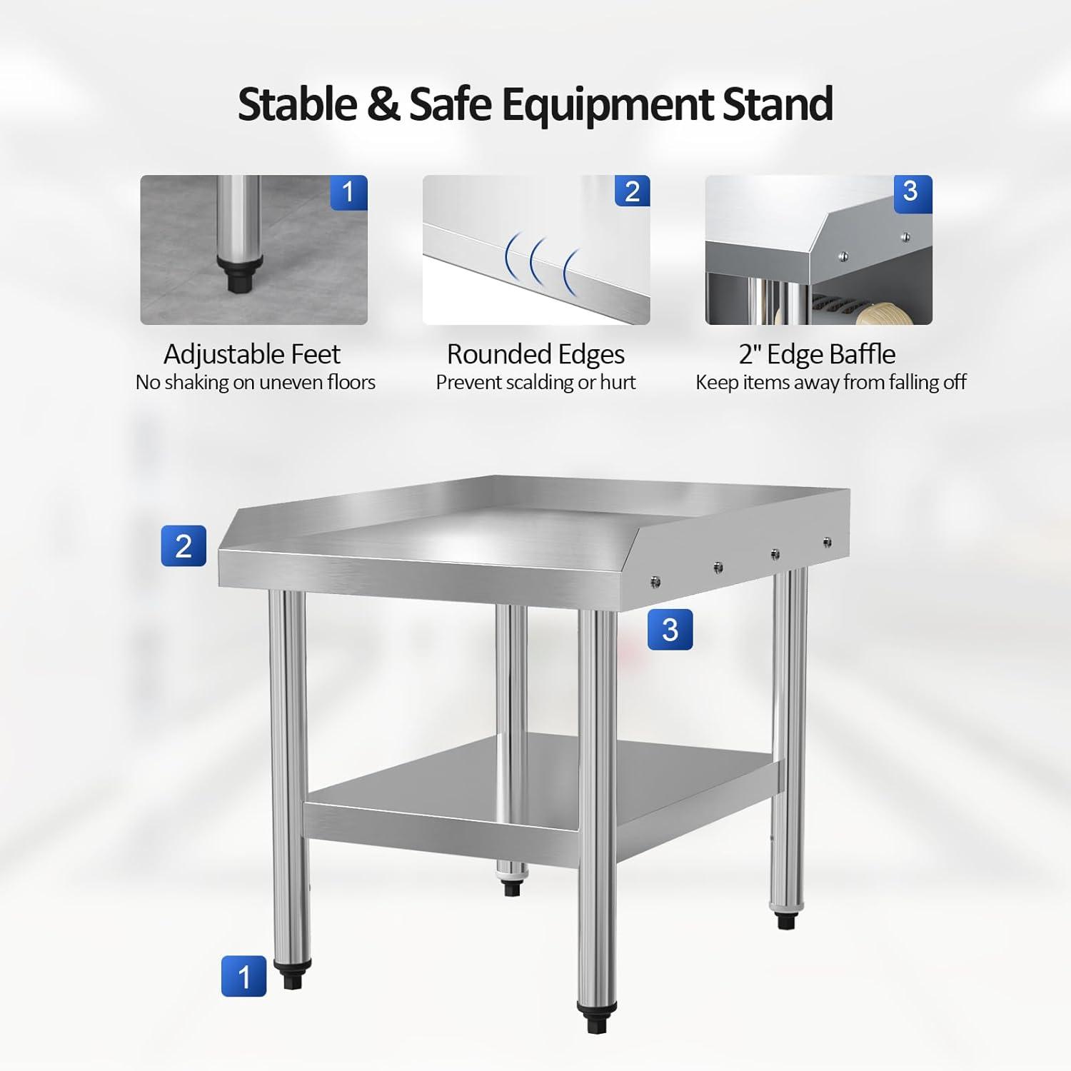 【Easy Assembly】The stainless steel equipment stand provides all necessary accessories and detailed installation instructions, you can install quickly and effortlessly.The edges are welded and grounded, and the smooth front and rear edges keep the stand safe.