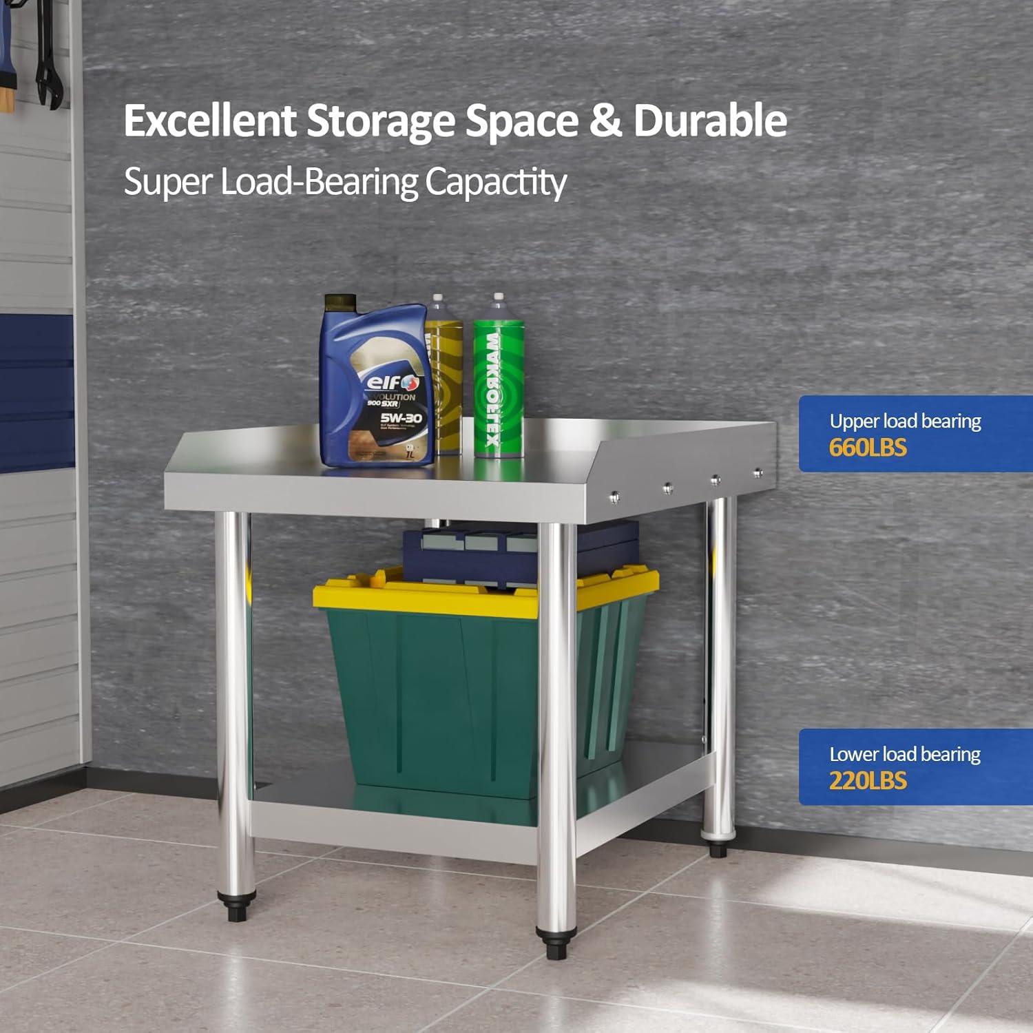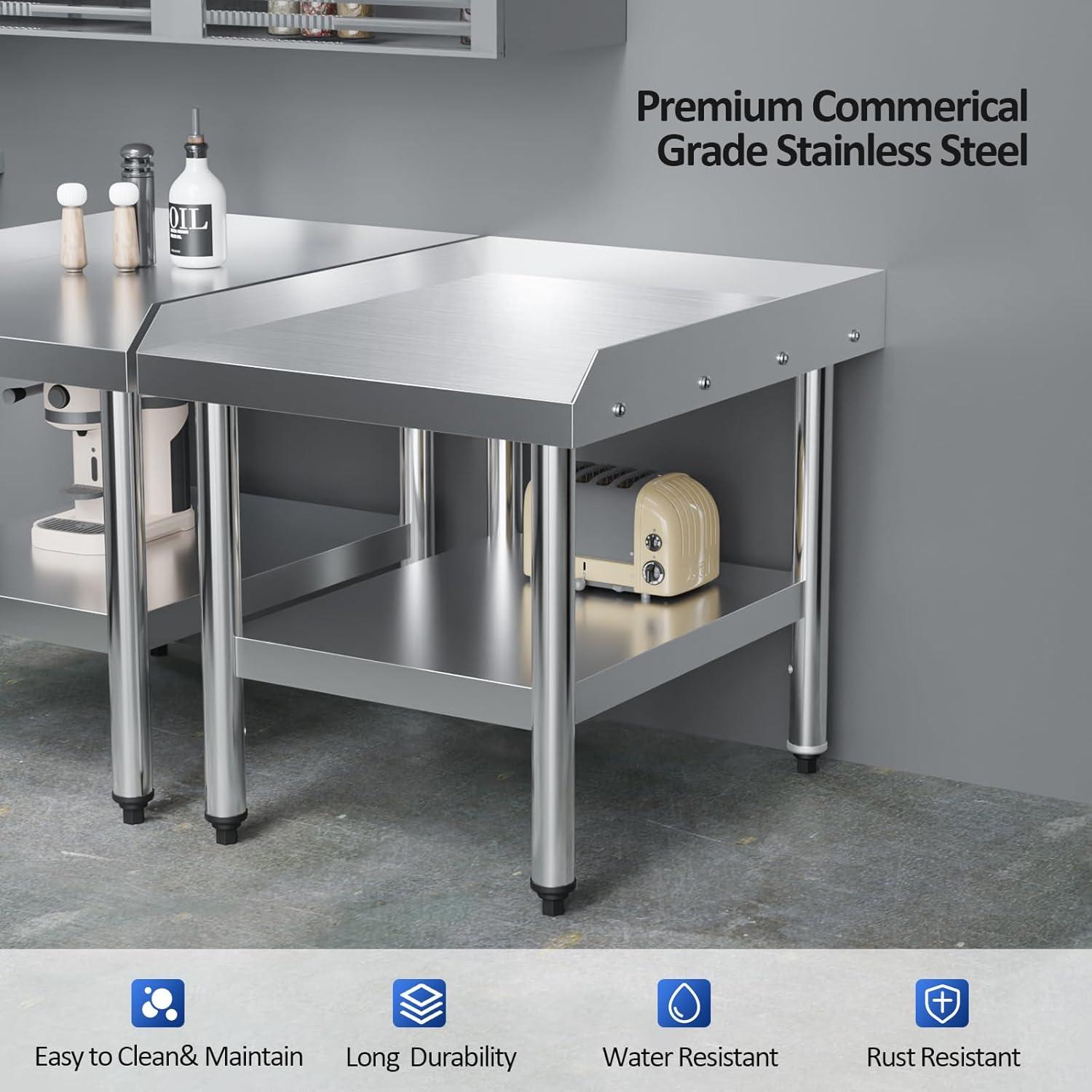 【High Quality Stainless Steel】 The commerical equipment stand is made of durable stainless steel, which is excellent resistant to corrosion and rust, easy to clean & maintain. The upper shelf can bear 660lbs, and its lower shelf can bear 220lbs.