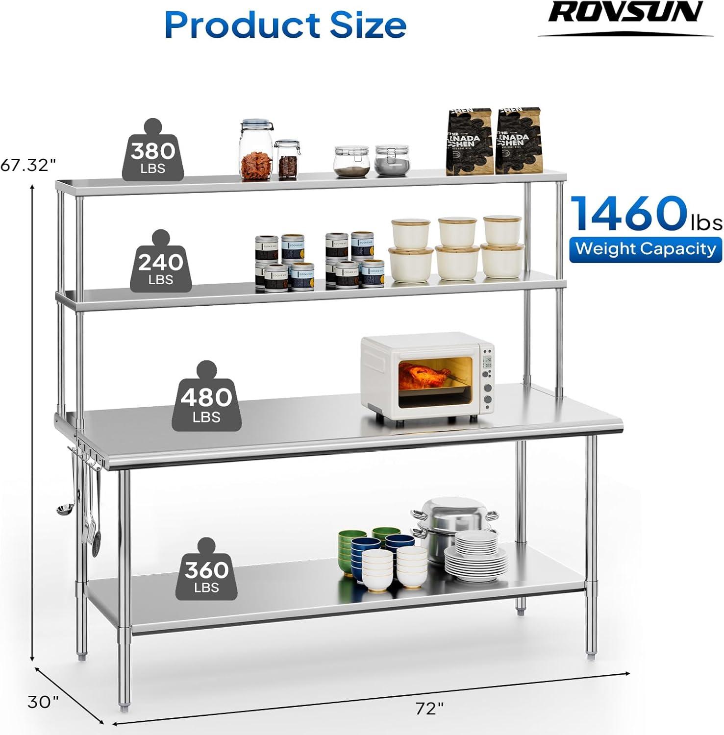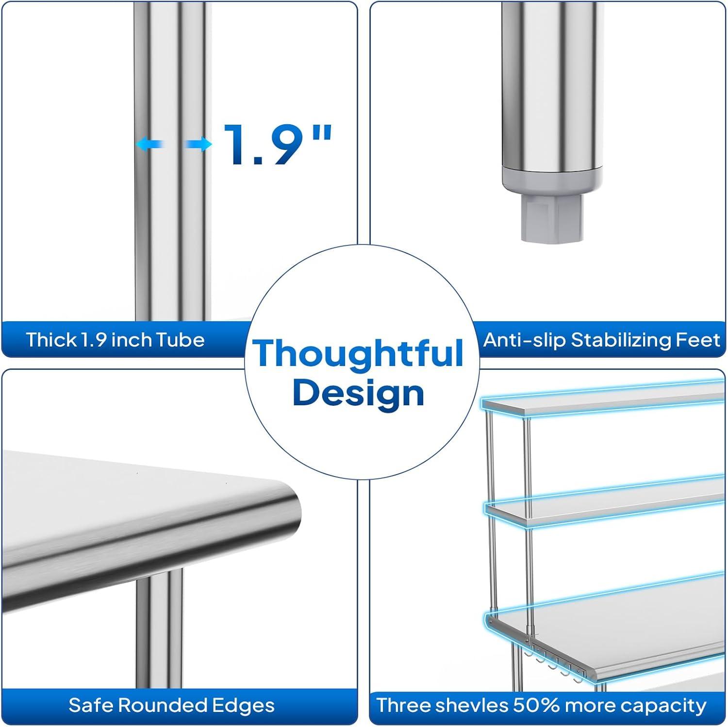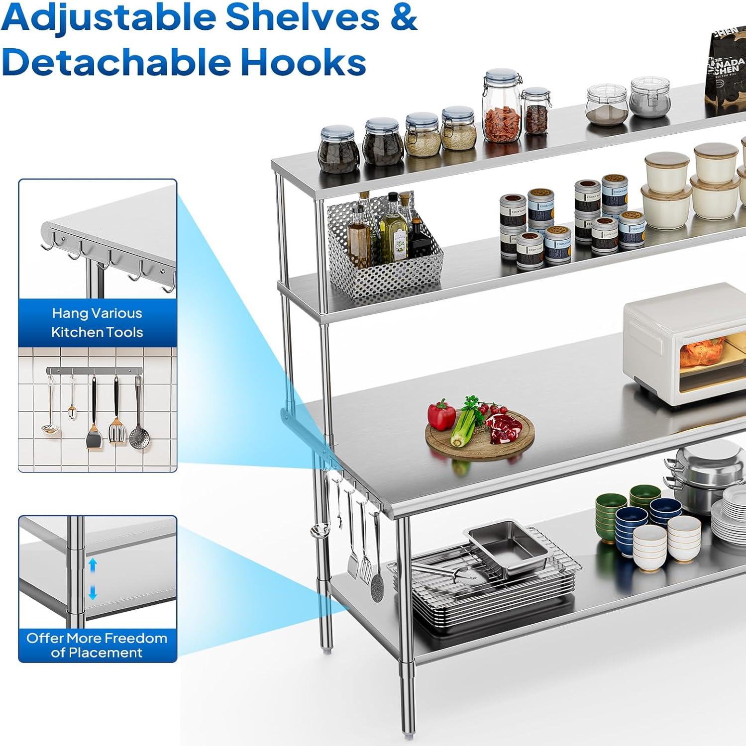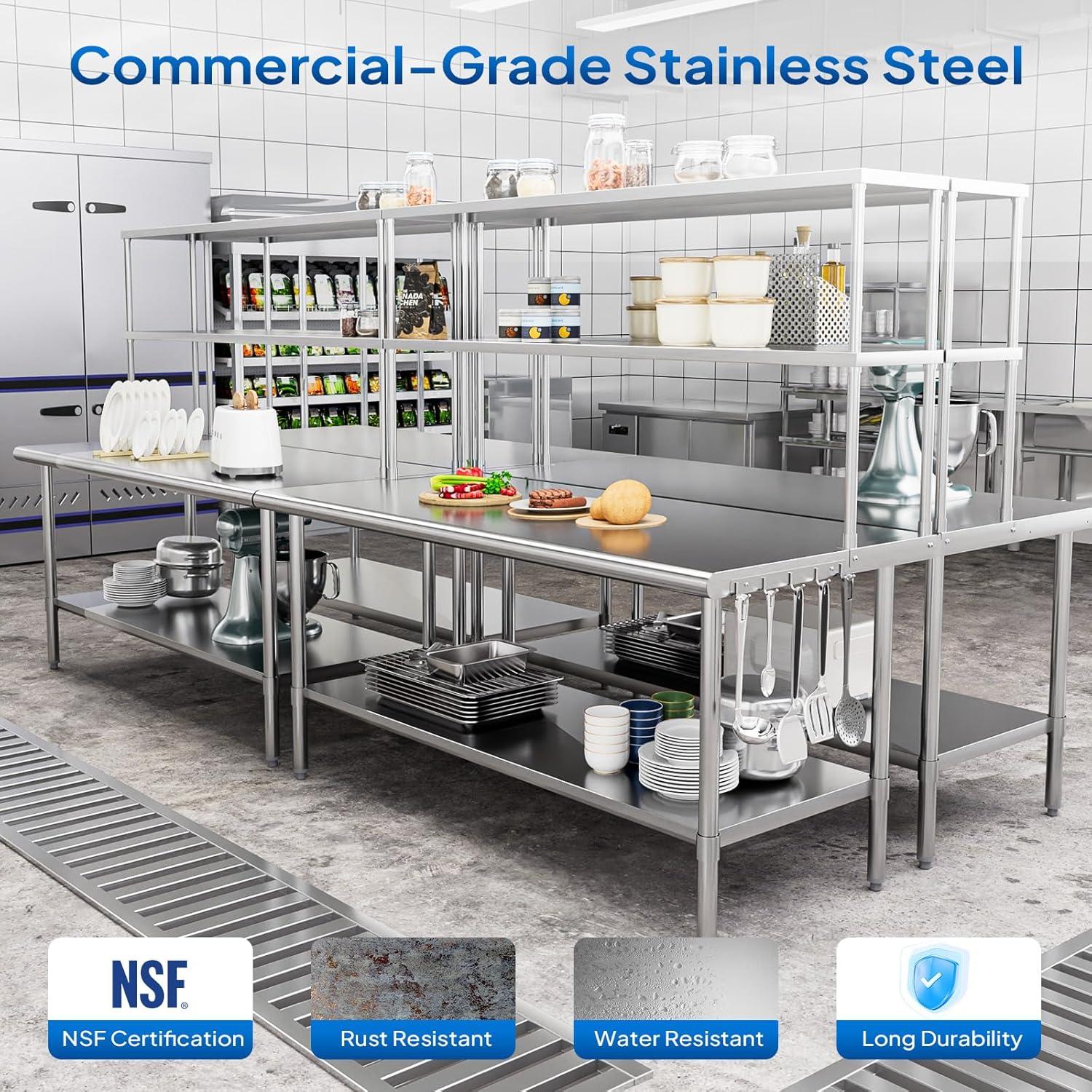 ➤【Premium Stainless Steel】NSF certified commercial table table is made of durable stainless steel, which is excellent resistant to corrosion and rust, easy to clean & maintain. This ensures that the table can withstand daily use in busy environments.