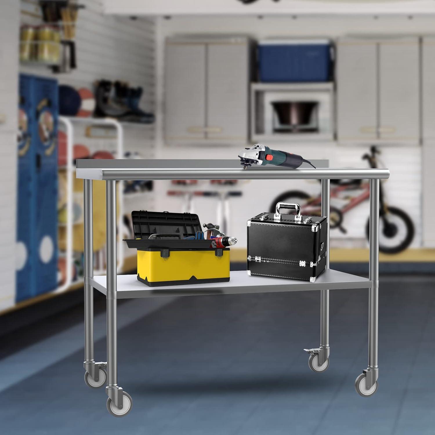 ✔Heavy Duty & Stable Work Table: Designed with solid inner triangle makes our stainless steel prep table very durable and heavy-duty, the all joints are welded expertly for enhanced durability. The upper shelf can bear 330lbs, and its lower shelf can bear 110lbs.