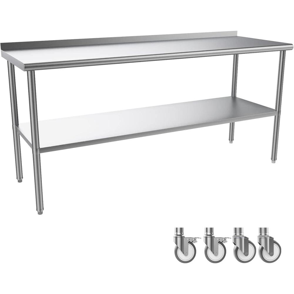 ✔High Quality Material: Our prep table top, leg and undershelf are made of high quality stainless steel. Stainless steel and polished surface make the work table have higher rust and corrosion resistance. And the smooth surface can be easily cleaning with the rag or paper, the backslash effectively protects your walls from scratches and prevent water splashes.